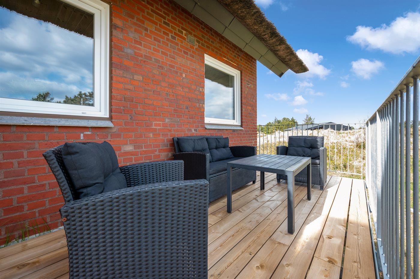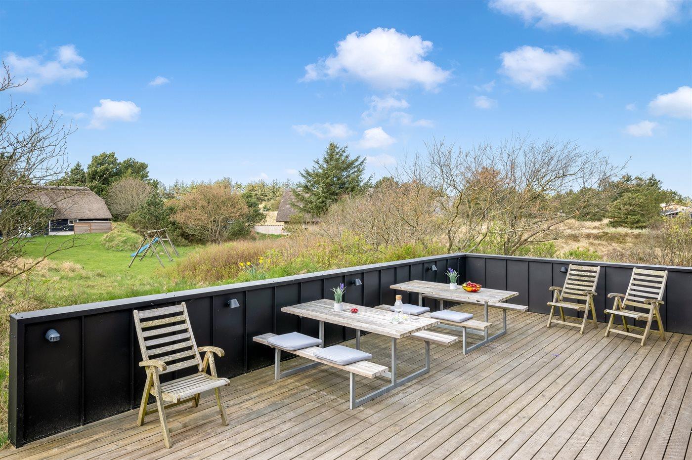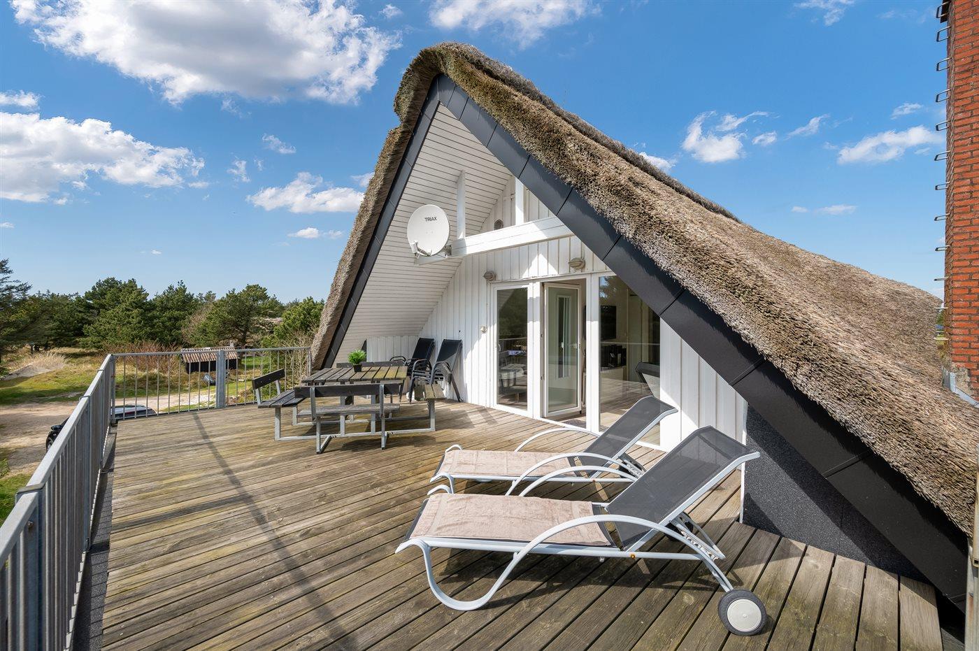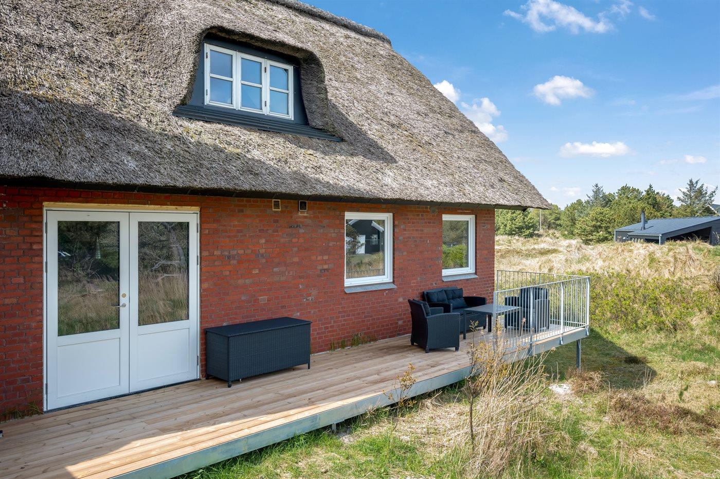 Dette velholdte sommerhus, som er velegnet til flere familier, har en unik og ugenert beliggenhed mindre end 5 min. gang fra en af Vestkystens bedste badestrande og Vejers by. Huset er meget lyst og venligt indrettet, og i forbindelse med 1. sal har huset en skøn, ugenert solterrasse med havemøbler og en flot udsigt over området.