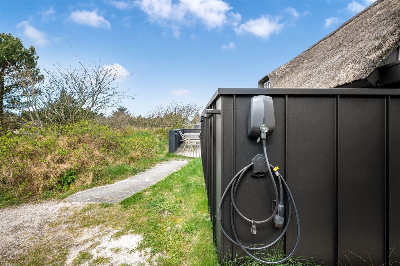 Ferieboligen er beliggende på en 1676 m² stor naturgrund. Der er 800 m til havet. Nærmeste forretning er beliggende i en afstand af 450 m. Til ferieboligen hører 84 m² terrasseareal. Der er installeret stik til opladning af elbil. Type 2 stik. Parkering ved ferieboligen.