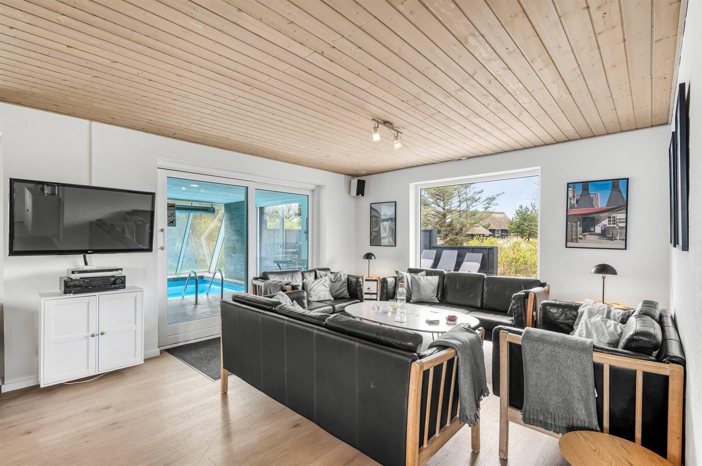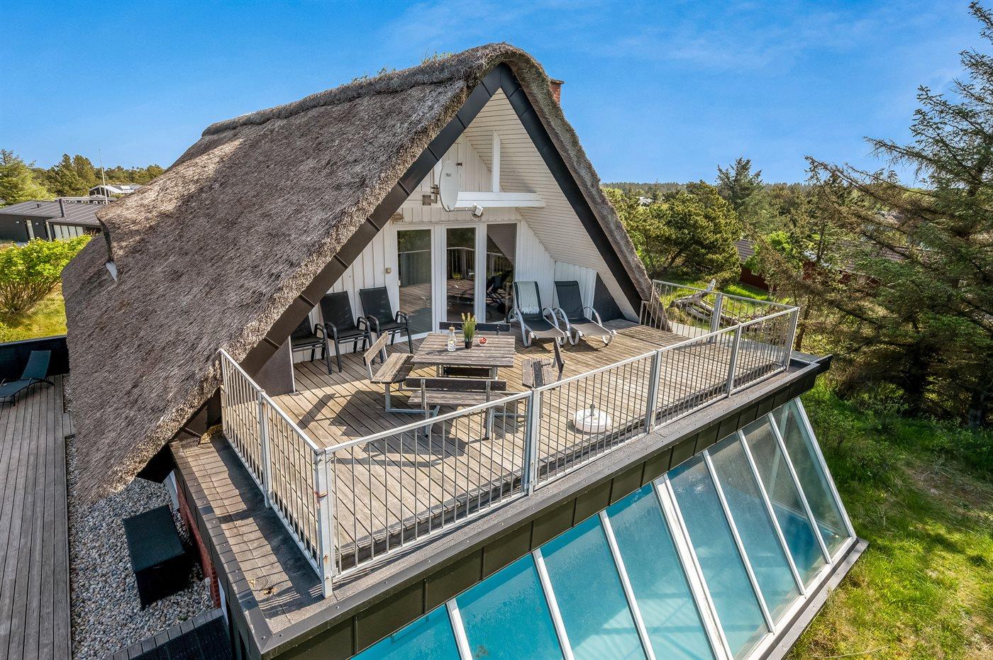 Velholdt sommerhus tæt på Vejers Strand med pool, sauna og stor terrasse.