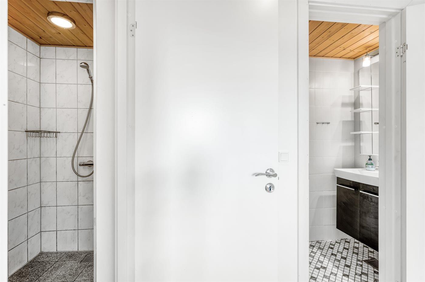 Der er 3 badeværelser med bruseniche og 3 toiletter I saunaen er der mulighed for afslapning.