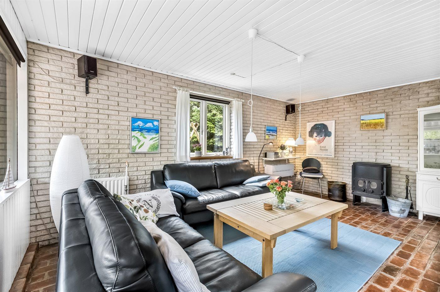 Dette dejlige lyse murstenssommerhus er beliggende på en ugeneret naturgrund, med gynge og sandkasse, på en lille sidevej. Sommerhuset gennemgik i 2005 en gennemgribende renovering.