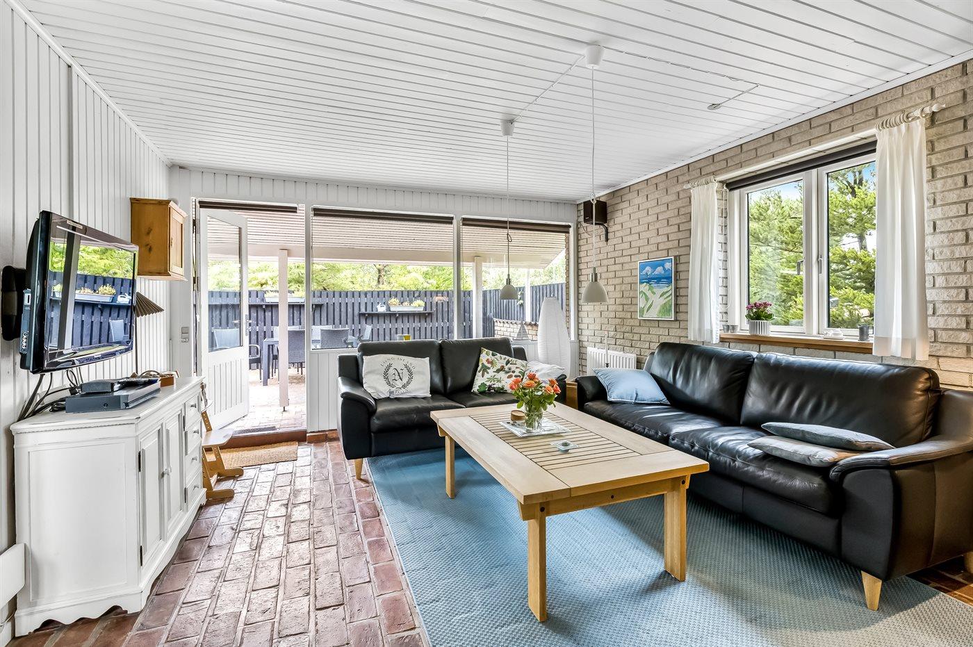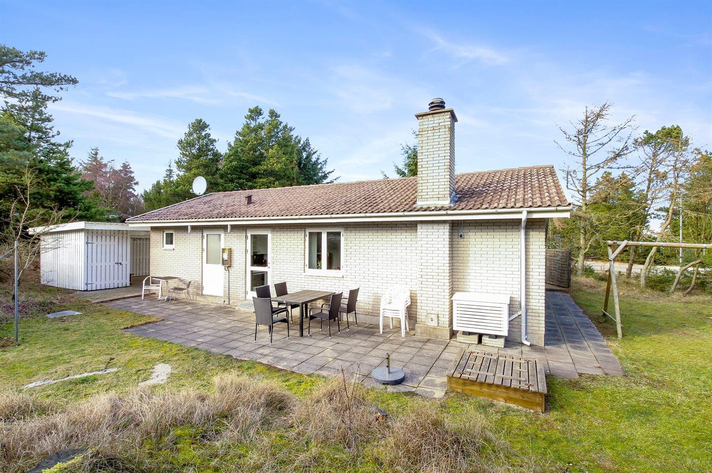 Lyst og renoveret sommerhus i Vejers Strand med naturgrund, terrasse og moderne faciliteter.