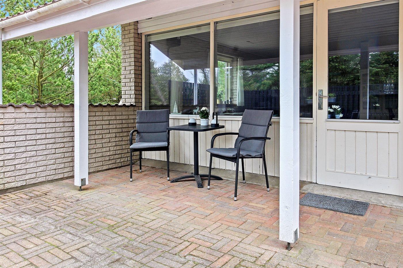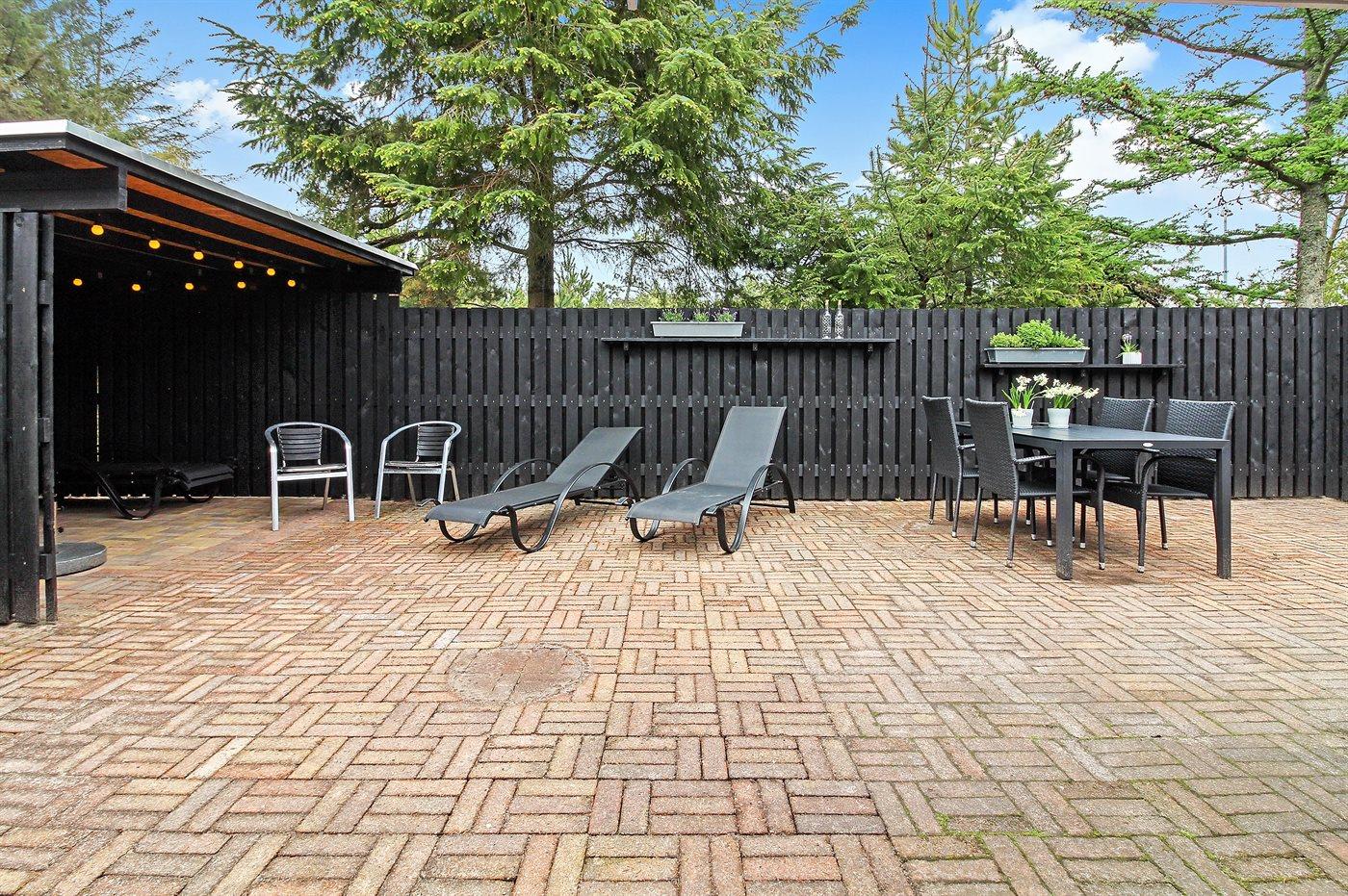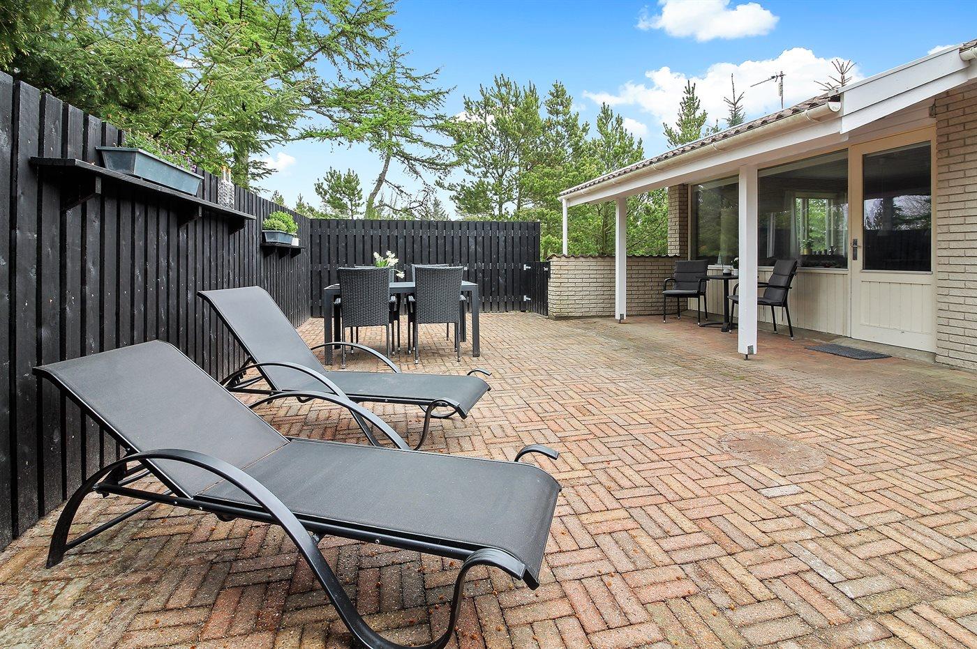 Ferieboligen er beliggende på en 1550 m² stor naturgrund. Der er 600 m til havet. Nærmeste forretning er beliggende i en afstand af 400 m. Til ferieboligen hører 138 m² terrasseareal. Desuden er der 6 m² overdækket terrasse. Gynge. Sandkasse. Der er carport til rådighed. Parkering ved ferieboligen.