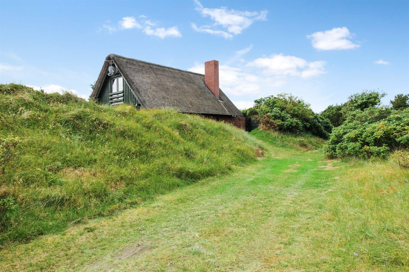 Ikke langt fra den dejlige badestrand ligger dette sommerhus på en stor og kuperet grund.