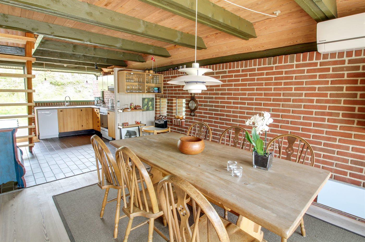 Sommerhuset egner sig til 6 personer. Ferieboligen er på 95 m², er i 2 plan, og er bygget i 1976. Det er ikke tilladt at medbringe husdyr. Ferieboligen er udstyret med energibesparende varmepumpe. Frysekapacitet på 10 liter. Der er desuden brændeovn. Puslebord.