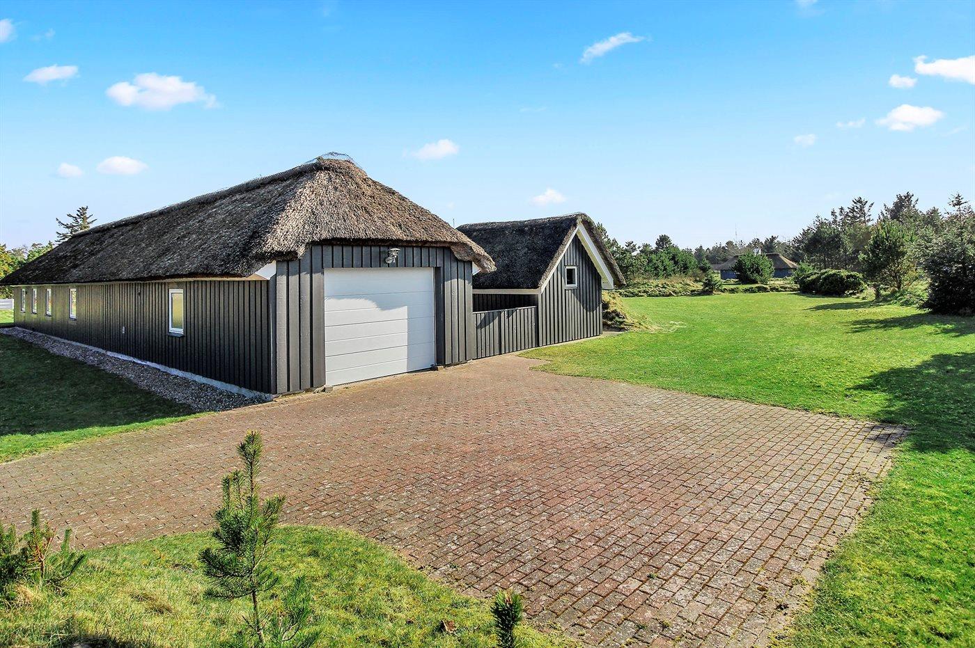 Ferieboligen er beliggende på en 2022 m² stor naturgrund. Der er 1200 m til havet. Nærmeste forretning er beliggende i en afstand af 500 m. Til ferieboligen hører 40 m² terrasseareal fordelt på 2 terrasser, der giver mulighed for sol fra morgen til aften. Heraf i alt 25 m² lukket terrasse. Parkering ved ferieboligen.