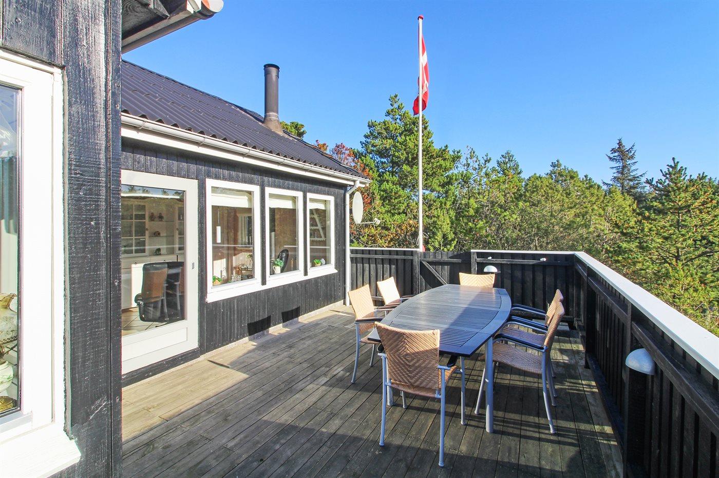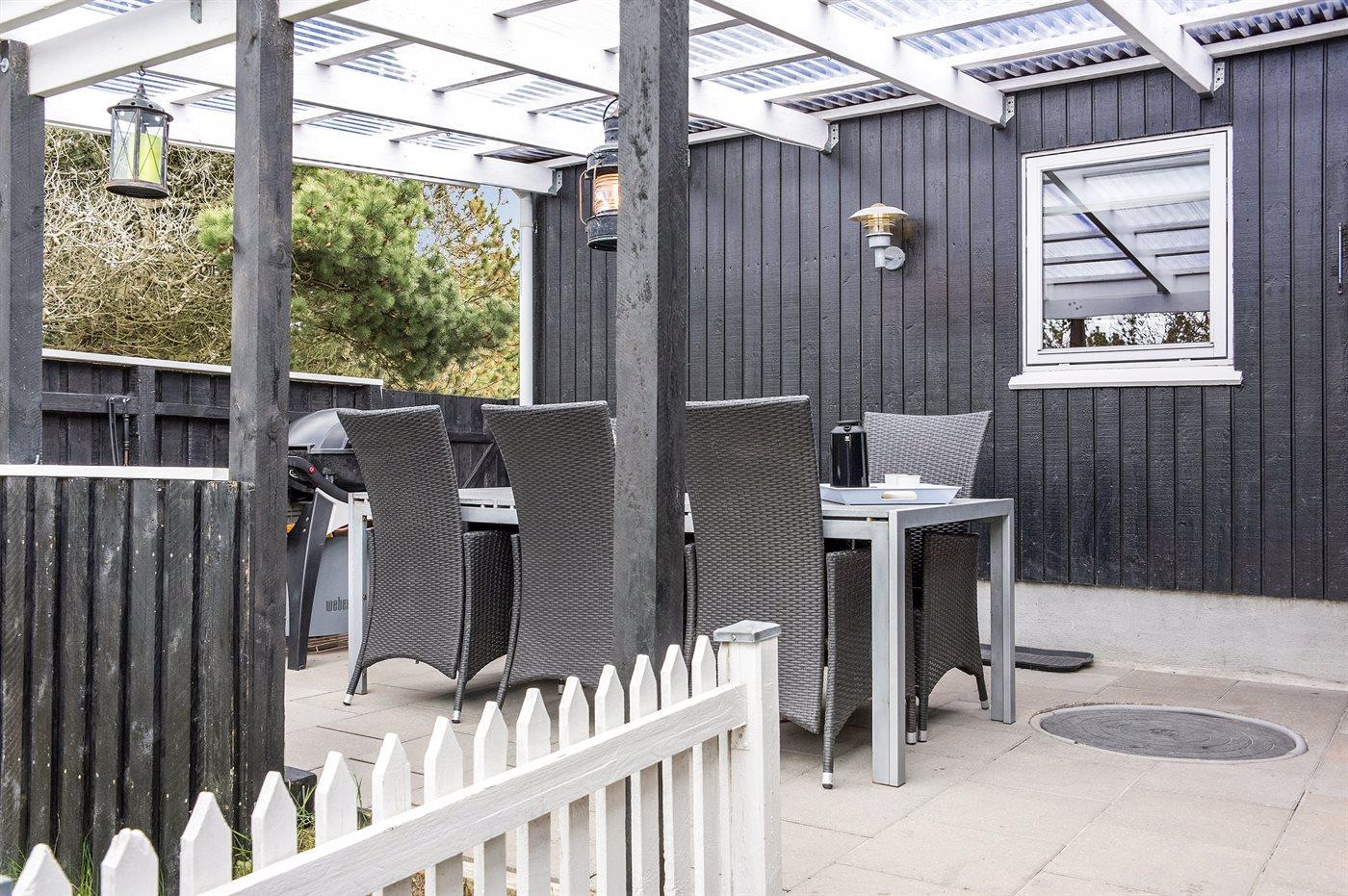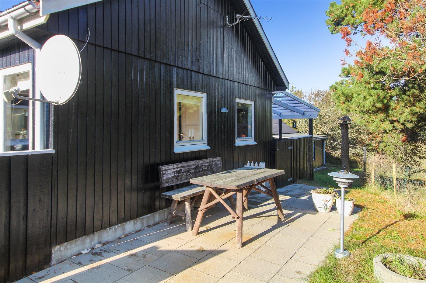 Ferieboligen er beliggende på en 2279 m² stor naturgrund. Grunden er indhegnet. Der er 500 m til havet. Nærmeste forretning er beliggende i en afstand af 400 m. Til ferieboligen hører 50 m² terrasseareal. Heraf i alt 30 m² lukket terrasse. Grill til rådighed. Parkering ved ferieboligen.