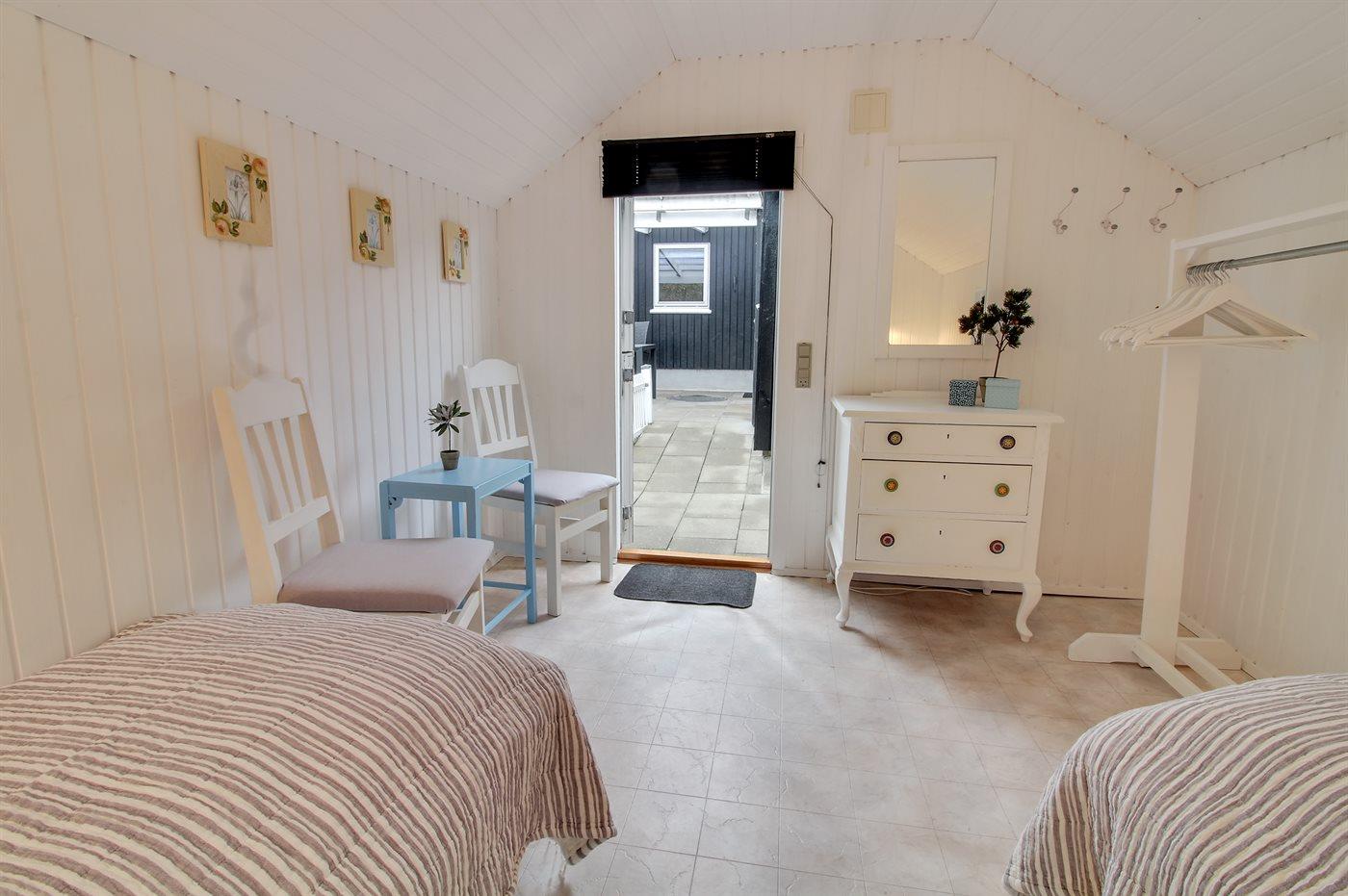 Der er i alt 4 soveværelser. Sovepladserne fordeler sig på: 6 sovepladser i dobbeltsenge. 2 sovepladser i enkeltsenge.- 2 af disse sovepladser befinder sig i et anneks.