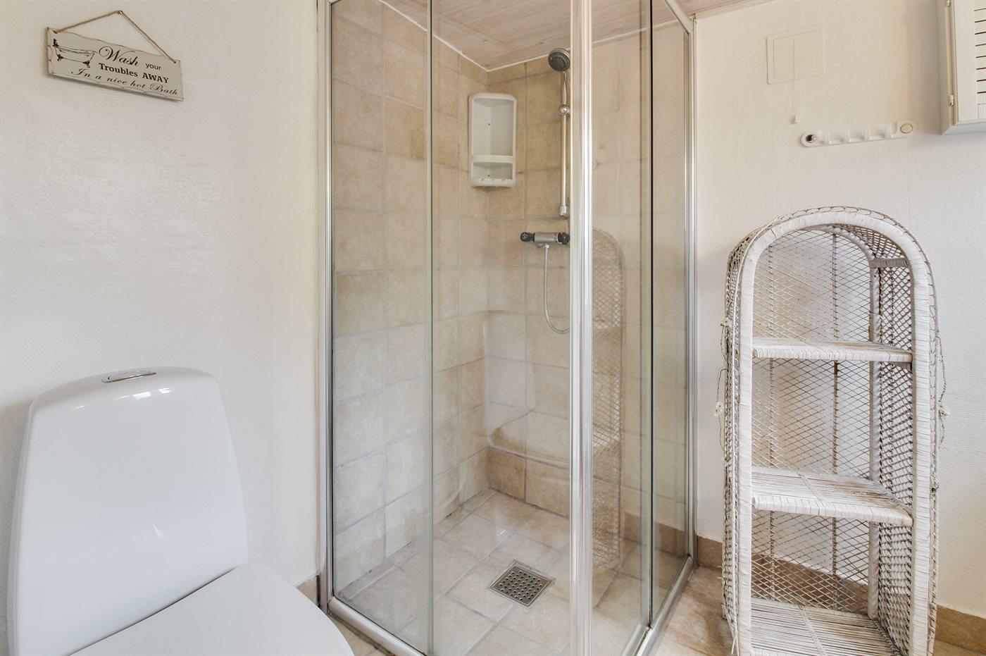 Der er 1 badeværelse med bruseniche og 1 toilet.. Der er gulvvarme på 1 badeværelse.