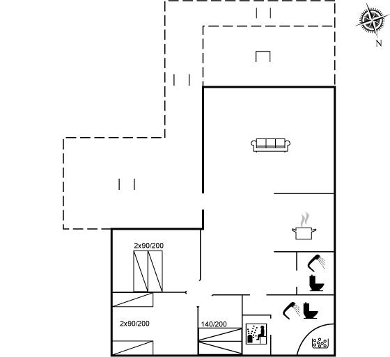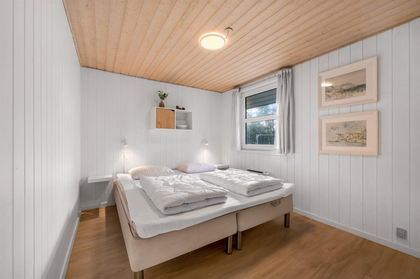 Der er i alt 3 soveværelser. Sovepladserne fordeler sig på: 4 sovepladser i dobbeltsenge. 2 sovepladser i enkeltsenge.