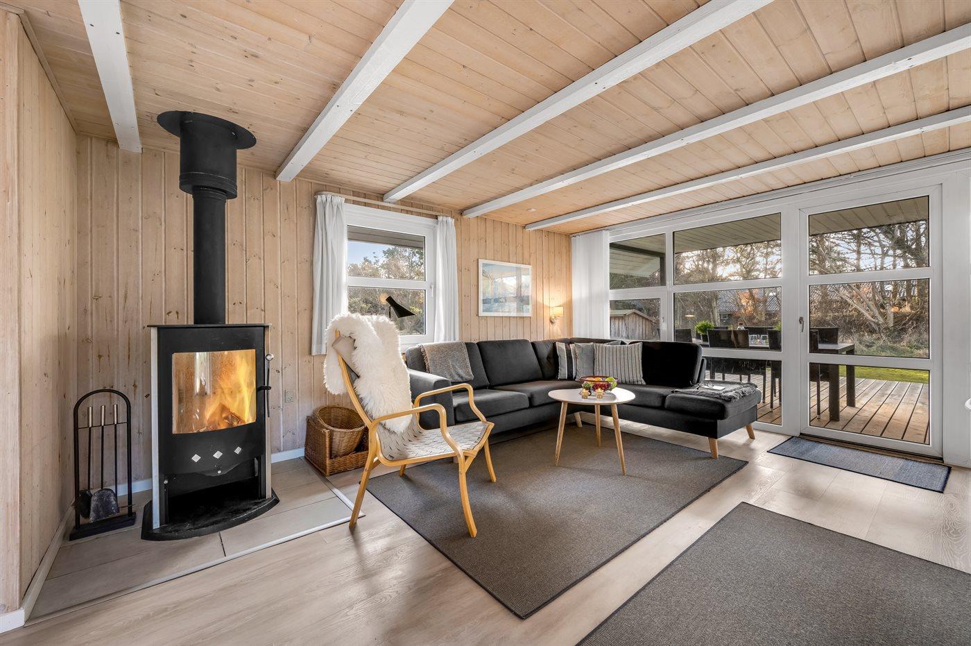 Sommerhuset egner sig til 6 personer. Ferieboligen er på 110 m² og er bygget i 1998. Det er tilladt at medbringe 1 husdyr. Ferieboligen er udstyret med energibesparende varmepumpe. Der er gulvvarme i stuen. Der er gulvvarme i alrummet. Ferieboligen har vaskemaskine. Tørretumbler. Frysekapacitet på 60 liter. Der er desuden brændeovn. God skabsplads på alle værelser.