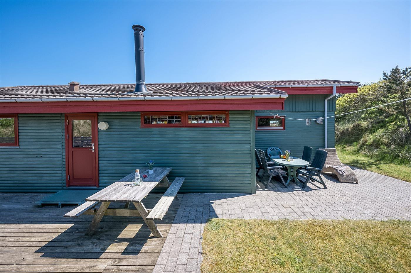 Dejligt familiehus beliggende på stor ugeneret naturgrund med panoramaudsigt over området. Meget børnevenlig klitgrund for enden af en blind vej med gynge og sandkasse. Fra klittoppen er der udsigt til Vesterhavet. Huset udlejes til maks 6 personer. Ferieboligen er på 85 m² og er bygget i 1974. Huset er tilbygget i 2009. Det er ikke tilladt at medbringe husdyr. Ferieboligen har vaskemaskine. Der er desuden brændeovn. Ferieboligen er beliggende på en 2700 m² stor naturgrund. Der er 250 m til havet. Nærmeste forretning er beliggende i en afstand af 100 m. Til ferieboligen hører 85 m² åbent terrasseareal. Desuden er der 11 m² overdækket terrasse. Gynge. Sandkasse. Grill til rådighed. Der er carport til rådighed. Parkering ved ferieboligen. Der er i alt 3 soveværelser. Sovepladserne fordeler sig på: 2 sovepladser i dobbeltseng. 3 sovepladser i enkeltsenge.1 soveplads i køjeseng. Køkkenet er udstyret med 1 køleskab samt fryser med en kapacitet på 54 liter. Der er 4 el-kogeplader, bageovn, mikrobølgeovn samt opvaskemaskine. Der er 1 badeværelse med bruseniche og 1 toilet. Der er gulvvarme på badeværelset. I ferieboligen er der 1 TV. DVD-afspiller. Radio. Stereoanlæg. Der er mindst 4 danske kanaler. Mindst 4 tyske kanaler. Der er trådløst internet og parabol til rådighed.