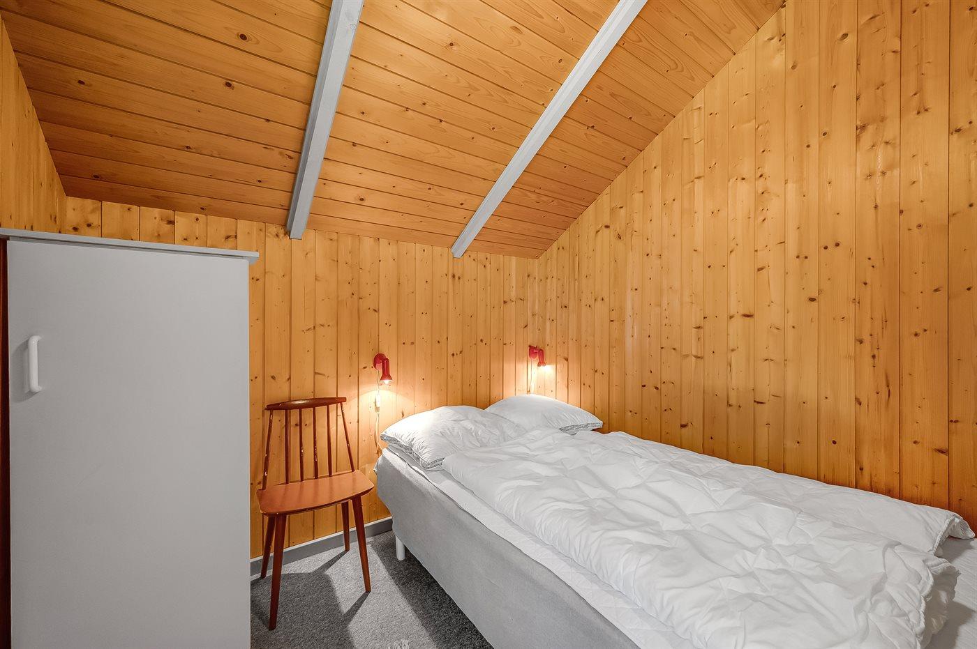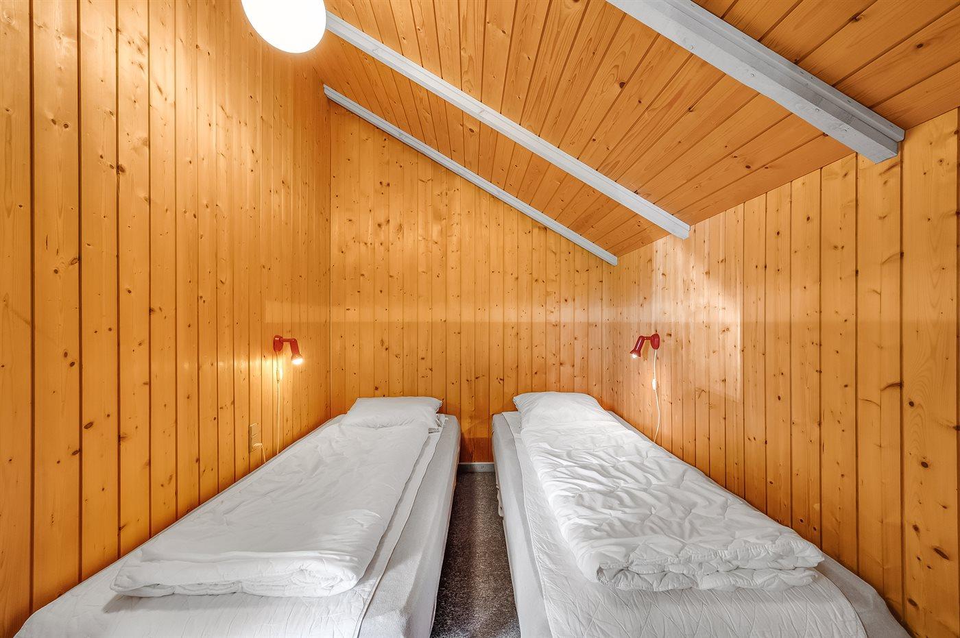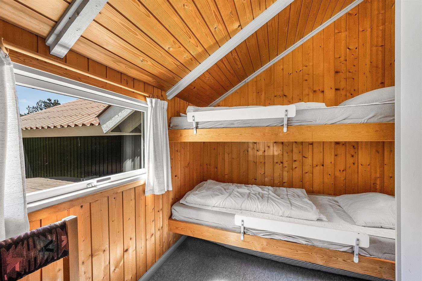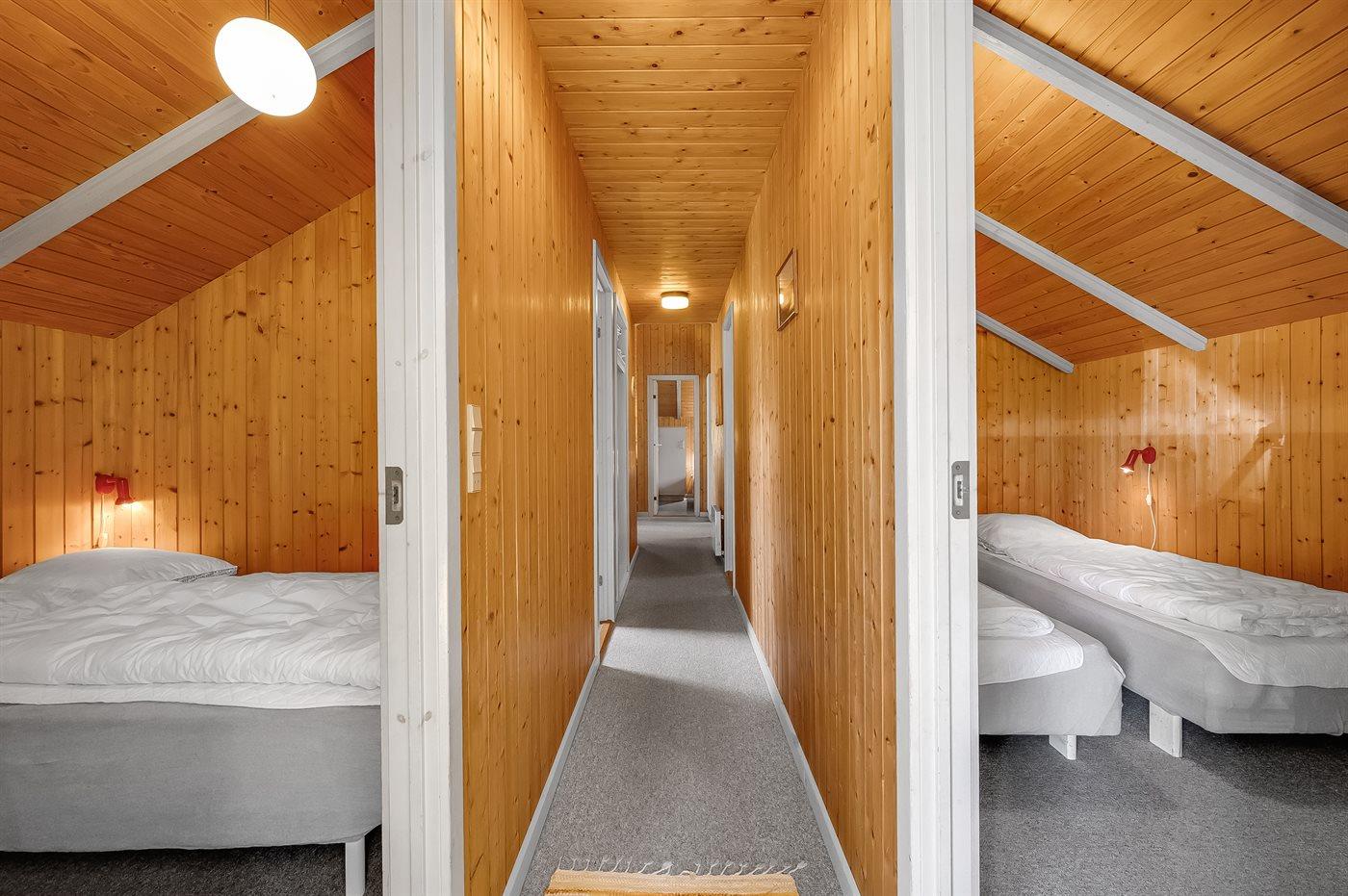 Der er i alt 4 soveværelser. Sovepladserne fordeler sig på: 2 sovepladser i dobbeltseng. 2 sovepladser i enkeltsenge. 2 sovepladser i køjeseng.