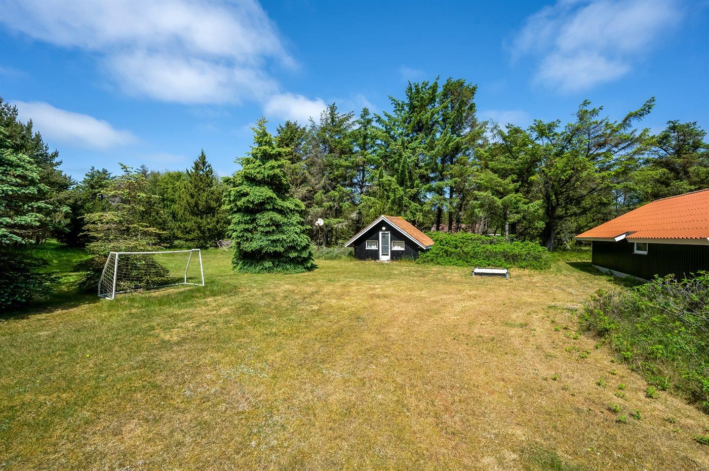 Ferieboligen er beliggende på en 2300 m² stor naturgrund. Der er 800 m til havet. Nærmeste forretning er beliggende i en afstand af 1400 m. Til ferieboligen hører 13 m² terrasseareal. Desuden er der 8 m² overdækket terrasse. Sandkasse. Fodboldmål. Parkering ved ferieboligen.
