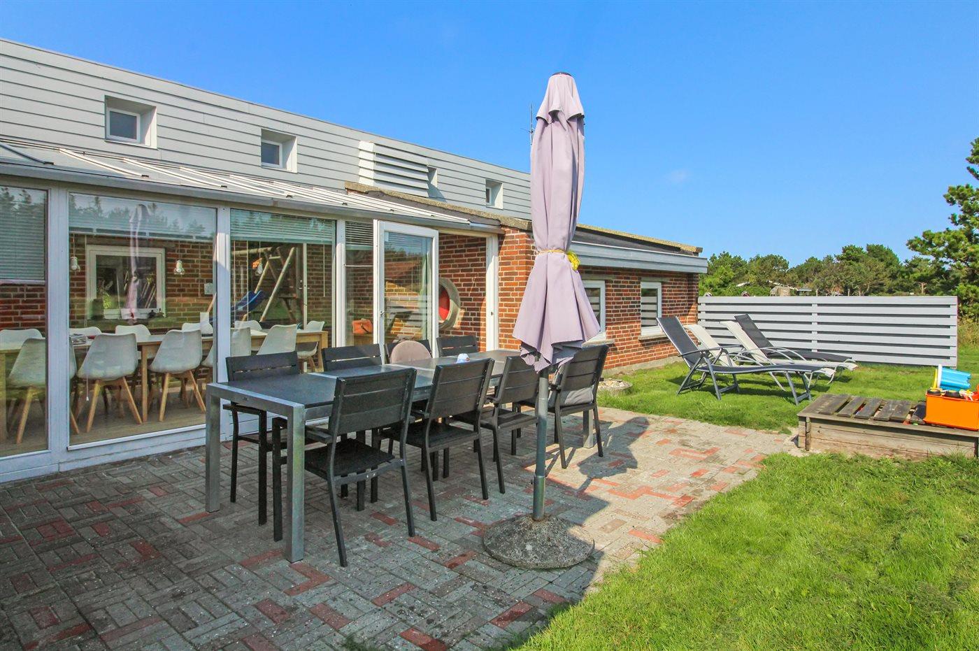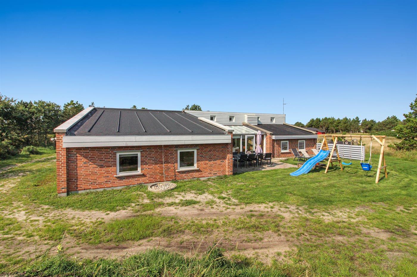 Hyggeligt sommerhus nær Vejers Strand med stor grund, terrasse og moderne faciliteter.
