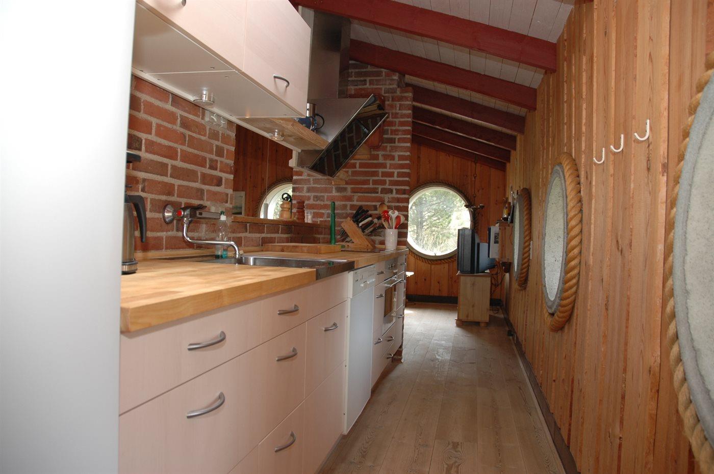 Køkkenet er udstyret med 1 køleskab. Der er 4 induktionskogeplader, kombineret varmluftovn og mikrobølgeovn samt opvaskemaskine.