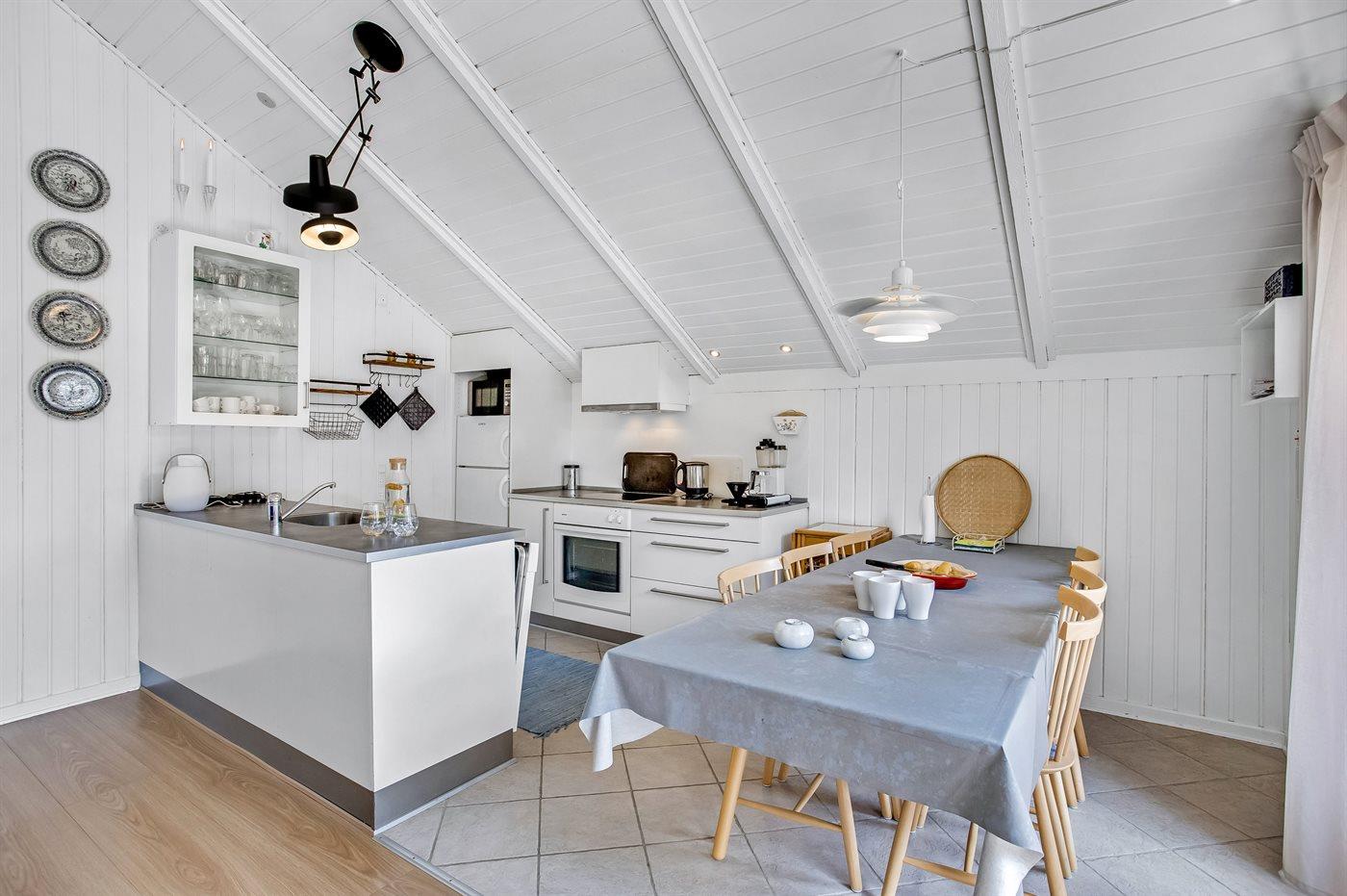 Køkkenet er udstyret med 1 køleskab. Der er 4 keramiske kogeplader, bageovn, mikrobølgeovn samt opvaskemaskine.