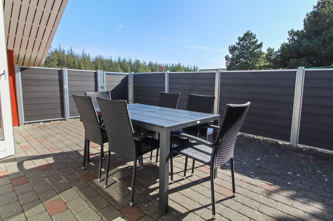 Ferieboligen er beliggende på en 1642 m² stor naturgrund. Der er 900 m til havet. Nærmeste forretning er beliggende i en afstand af 800 m. Til ferieboligen hører 21 m² terrasseareal. Desuden er der 12 m² overdækket terrasse. Parkering ved ferieboligen.