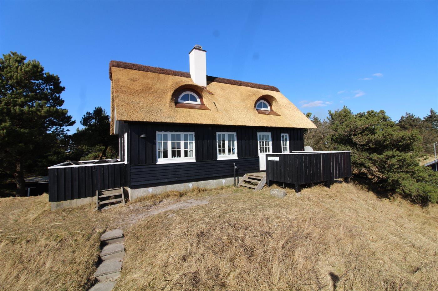 Charmerende sommerhus på klit med panoramaudsigt og tæt på Vejers Strand, perfekt til afslapning og naturoplevelser.
