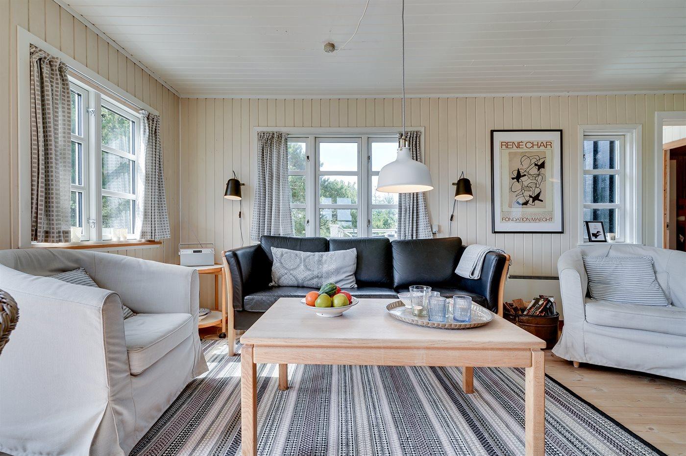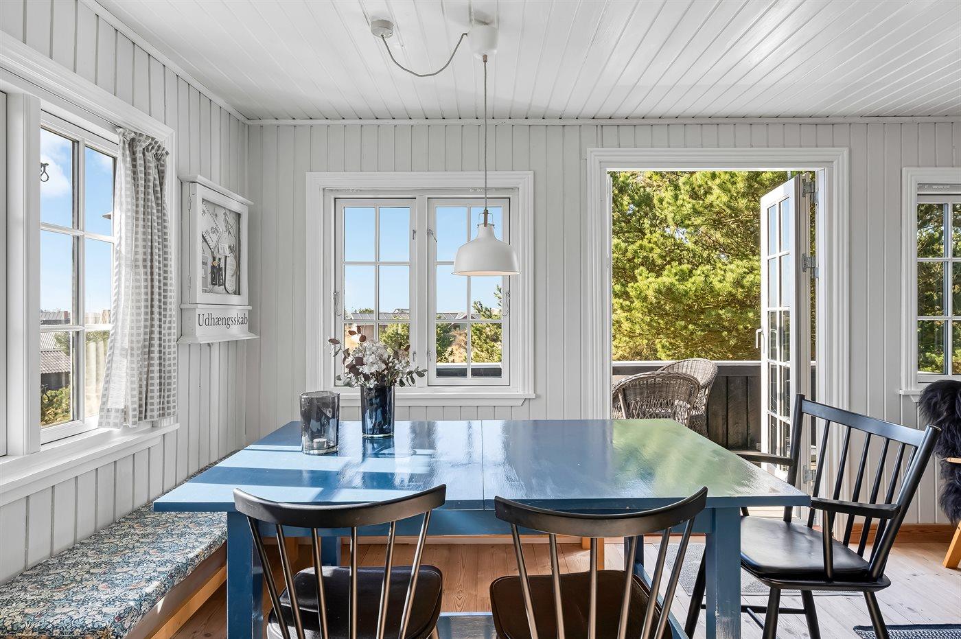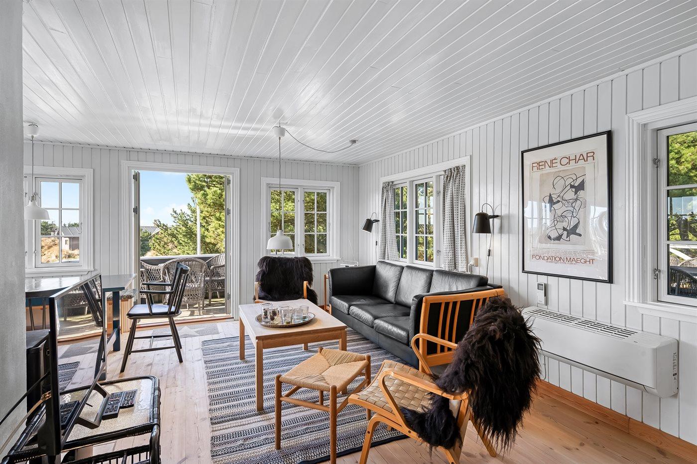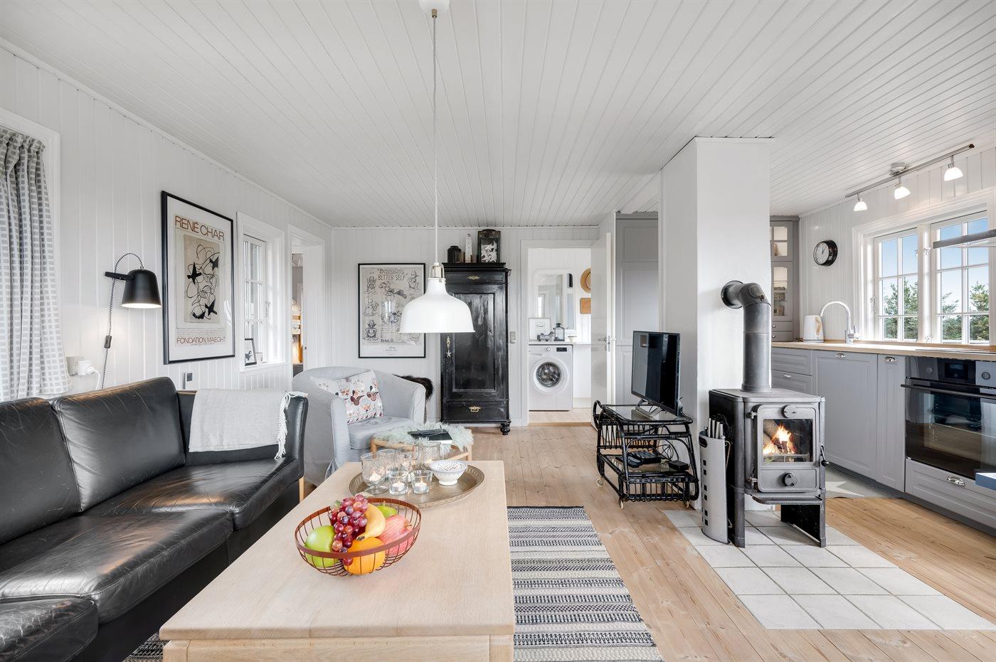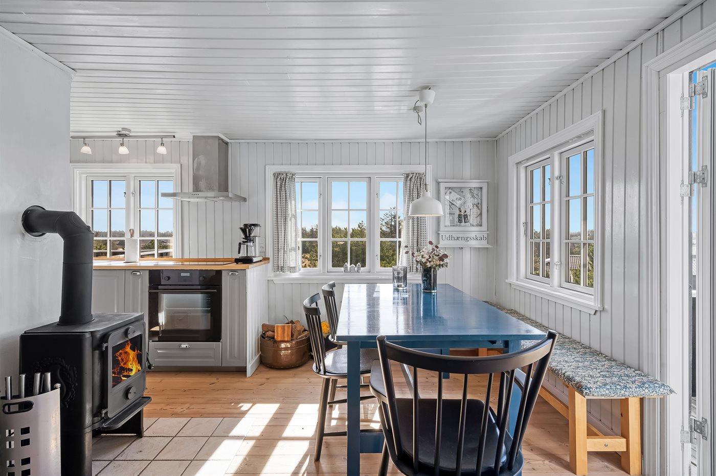 Dette charmerende sommerhus ligger smukt placeret højt på en klit med betagende panoramaudsigt over det naturskønne Vejers. Her får du den ægte sommerhusstemning – huset er varmt og indbydende indrettet, så du straks kommer i den rette feriestemning. Indenfor kan man samles til brætspil, hyggelæsning eller en rolig aften foran den knitrende brændeovn.