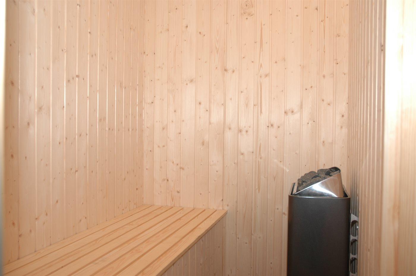 Der er 2 badeværelser med bruseniche og 2 toiletter. Der er gulvvarme på 2 badeværelser. I saunaen er der mulighed for afslapning.