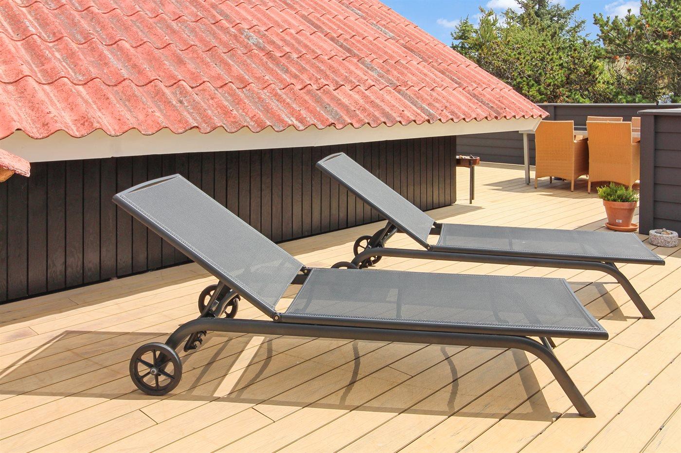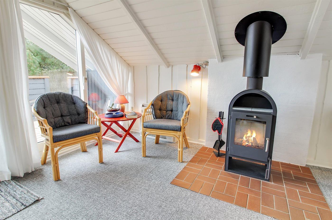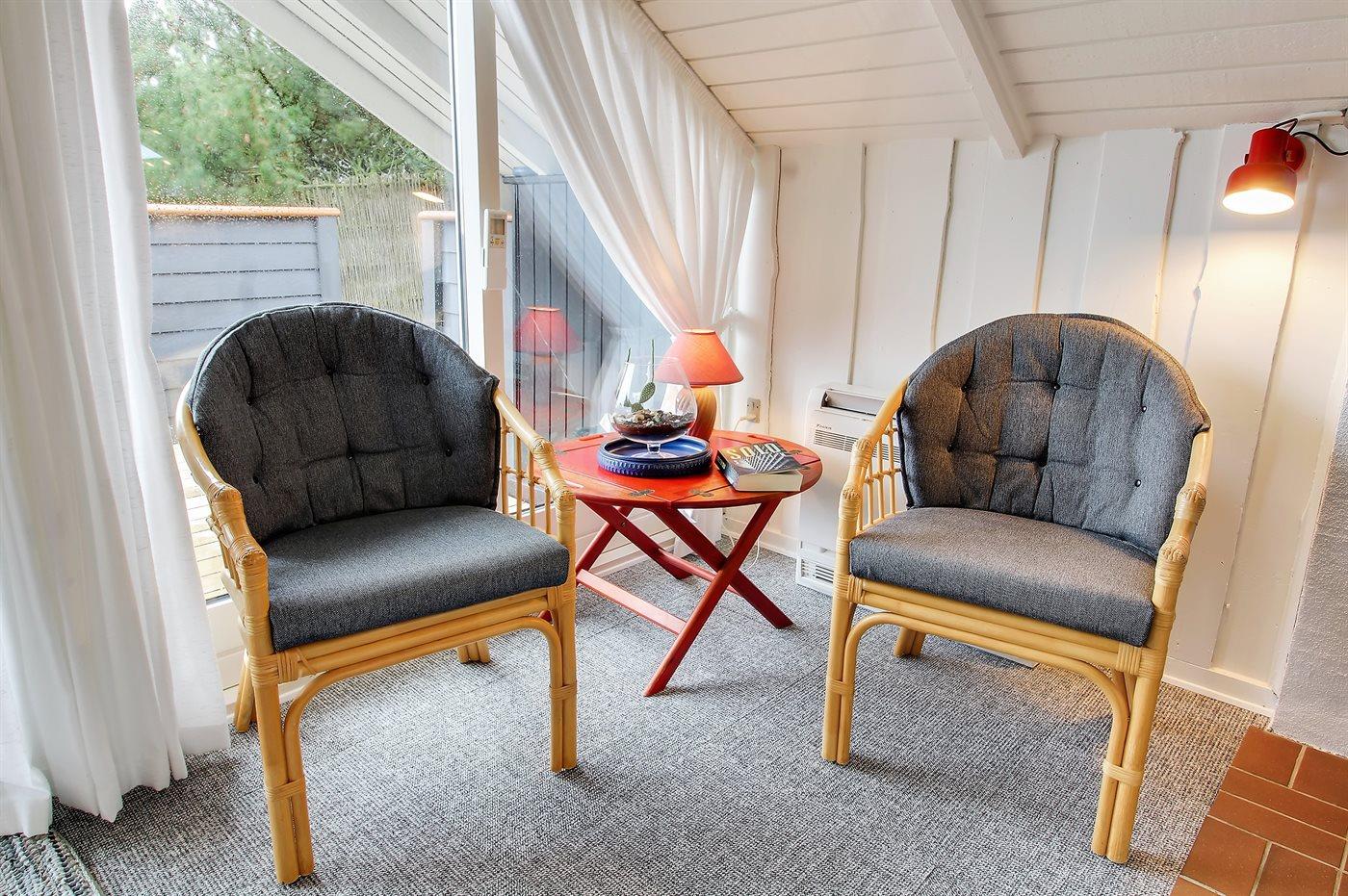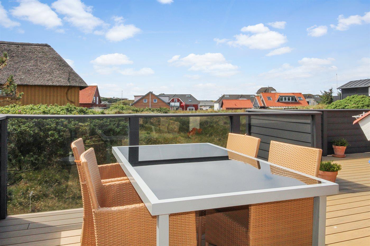 Ferieboligen er beliggende på en 500 m² stor naturgrund. Der er 200 m til havet. Nærmeste forretning er beliggende i en afstand af 75 m. Til ferieboligen hører 75 m² åbent og 10 m² overdækket terrasseareal - heraf i alt 85 m² lukket terrasse. Parkering ved ferieboligen.