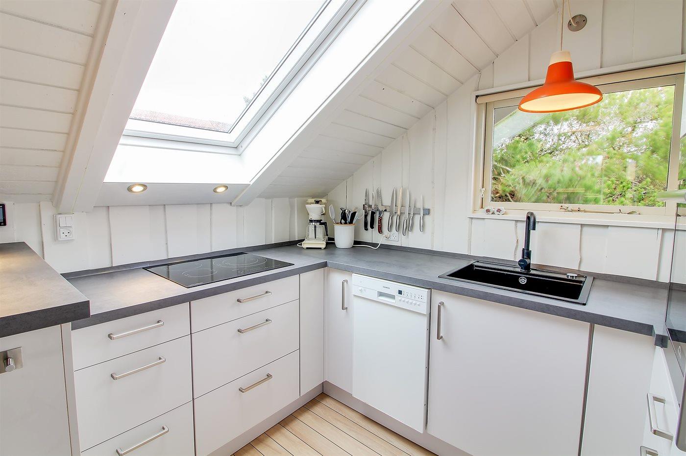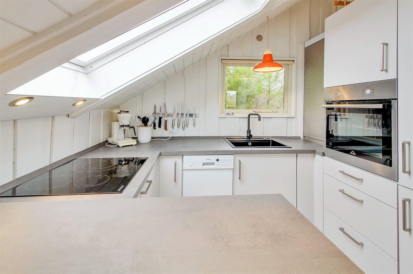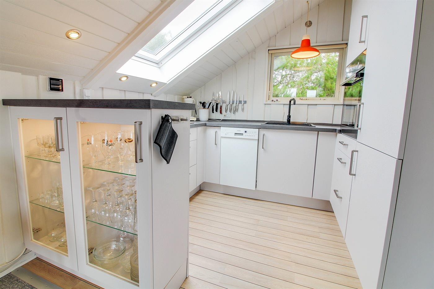 Køkkenet er udstyret med 1 køleskab. Der er 4 elkogeplader, varmluftovn, mikrobølgeovn samt opvaskemaskine.