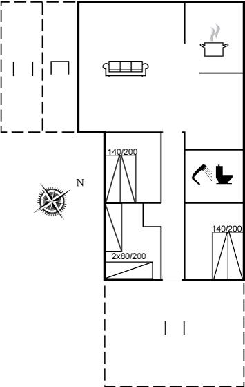 Der er i alt 3 soveværelser. Sovepladserne fordeler sig på: 4 sovepladser i dobbeltsenge. 2 sovepladser i enkeltsenge.