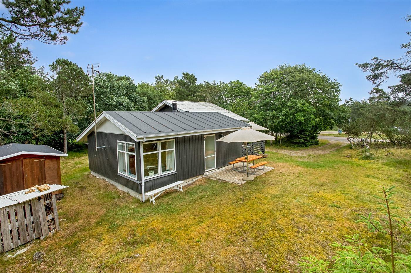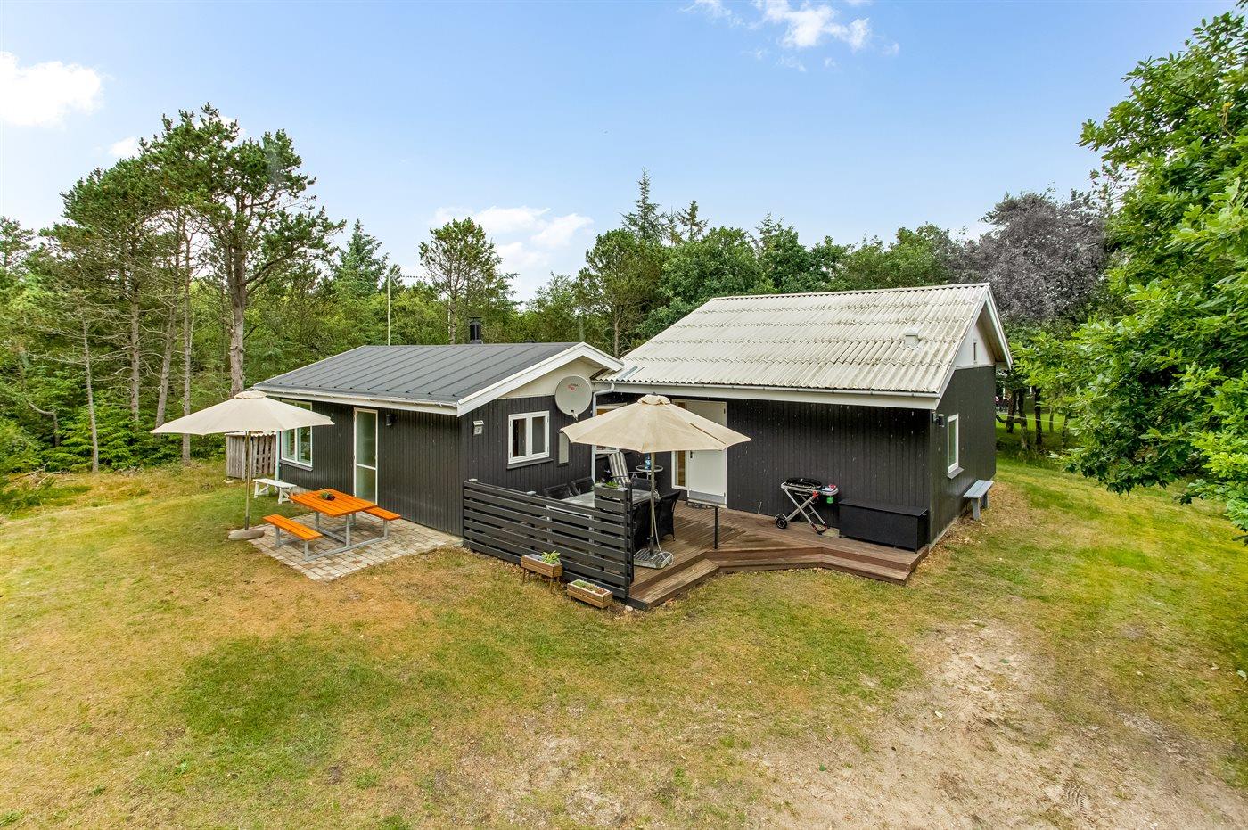 Hyggeligt sommerhus i Vejers Strand med spa, stor terrasse og smuk naturgrund.