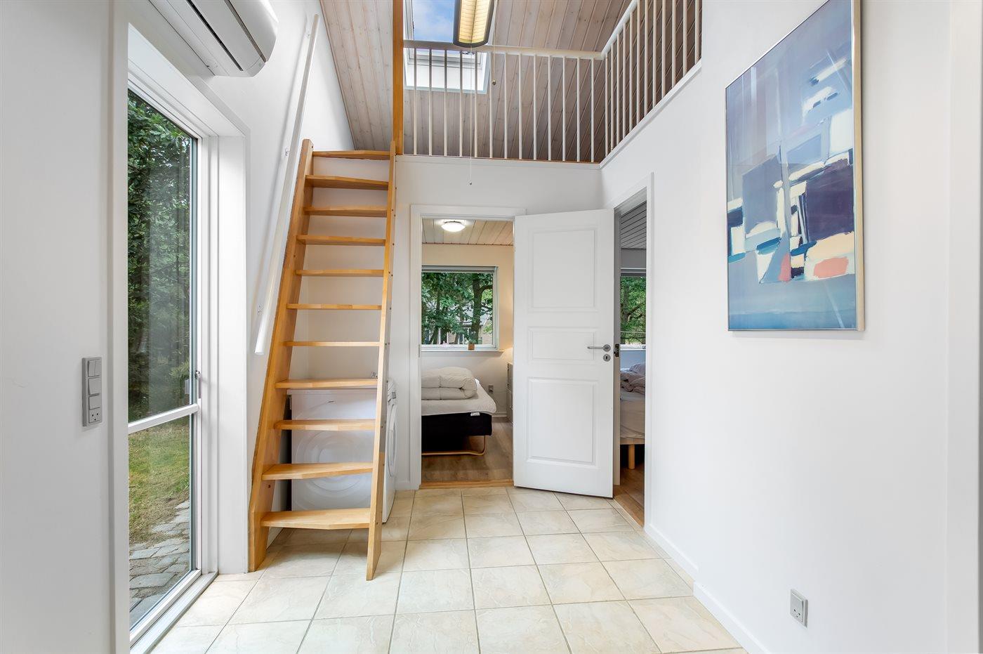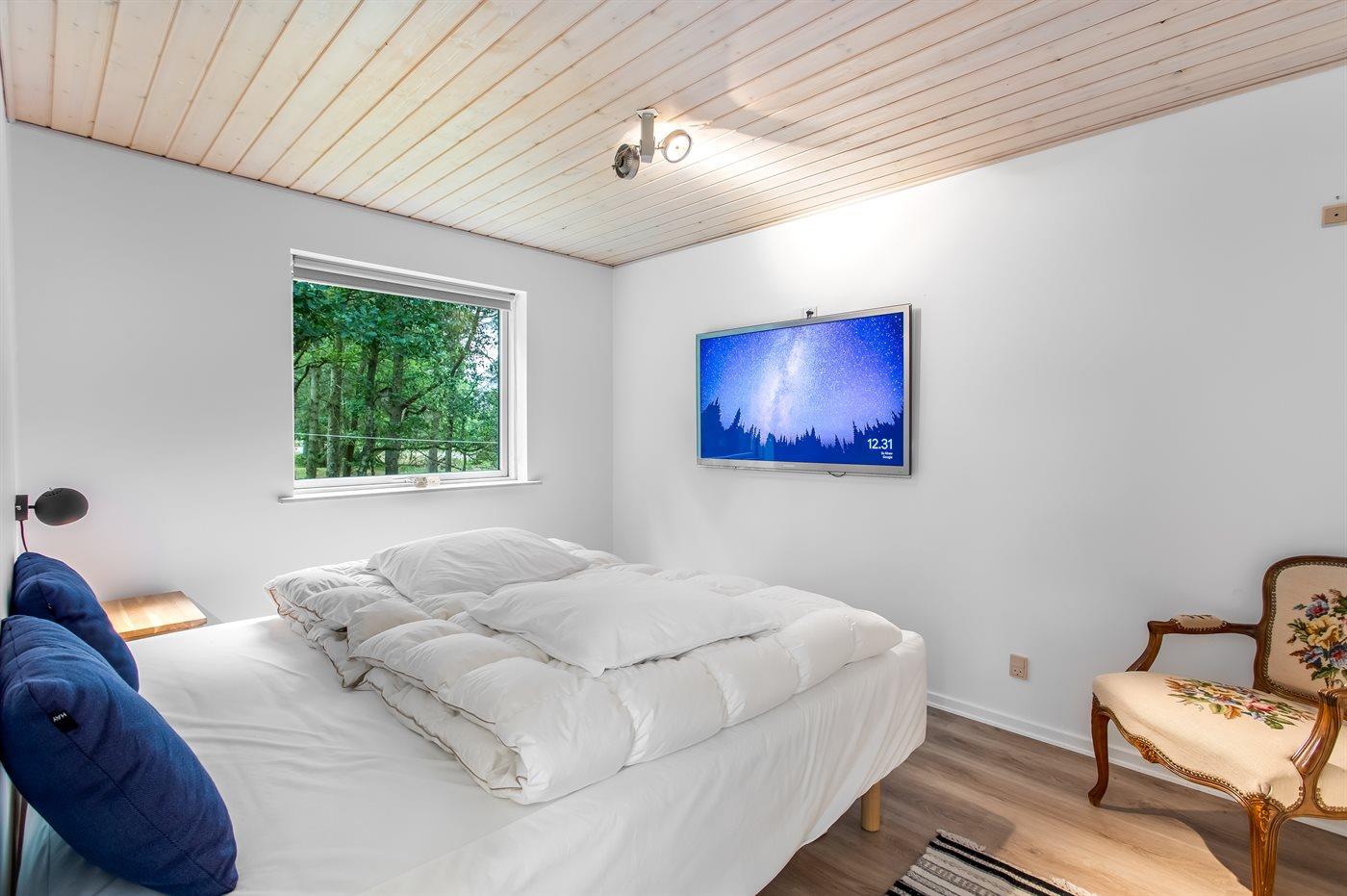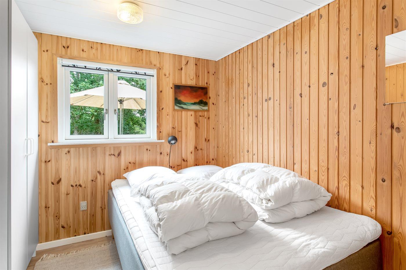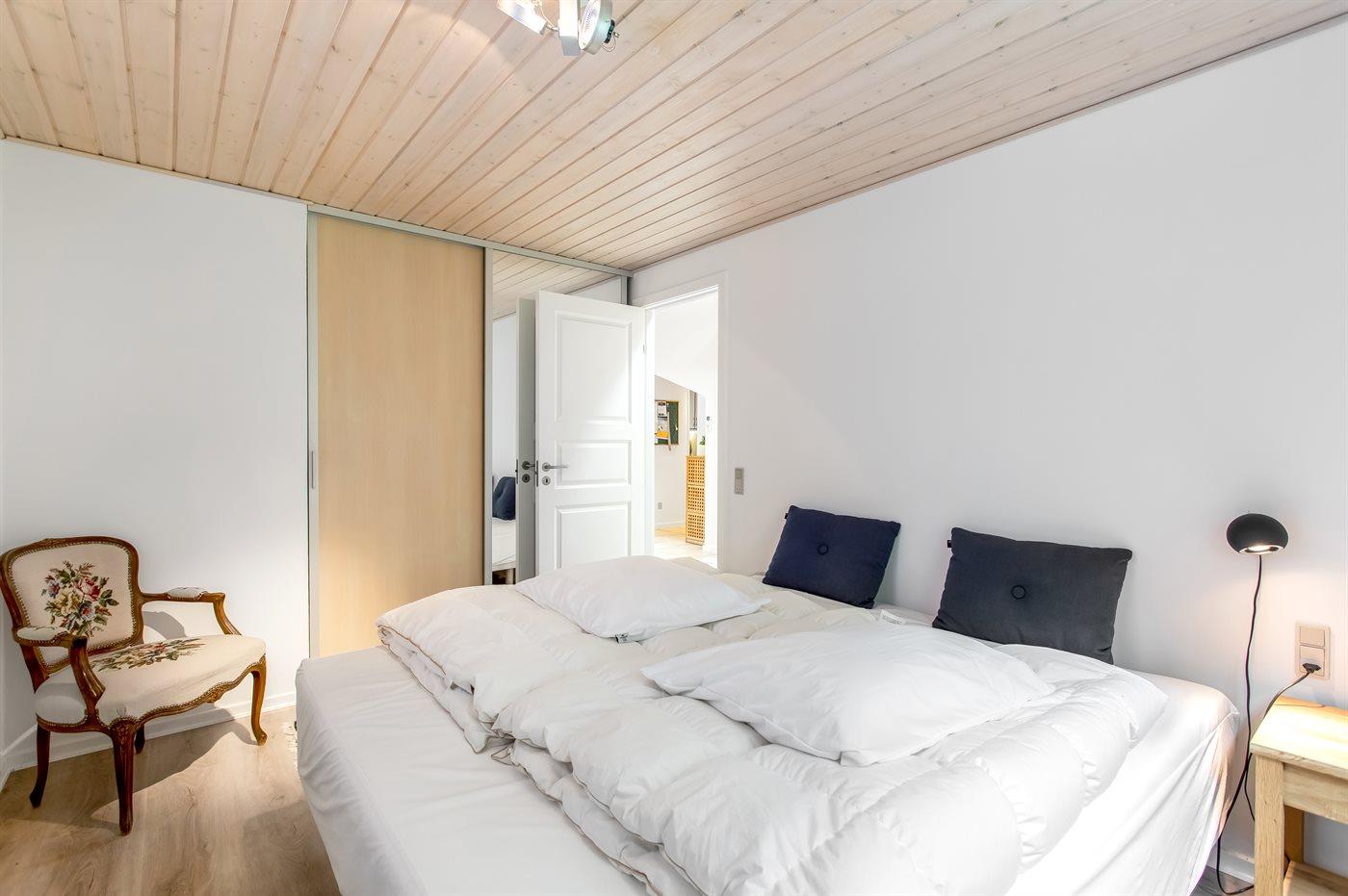 Der er i alt 3 soveværelser. Sovepladserne fordeler sig på: 6 sovepladser i dobbeltsenge. 2 sovepladser på madrasser. 2 af disse sovepladser befinder sig på husets hems.
