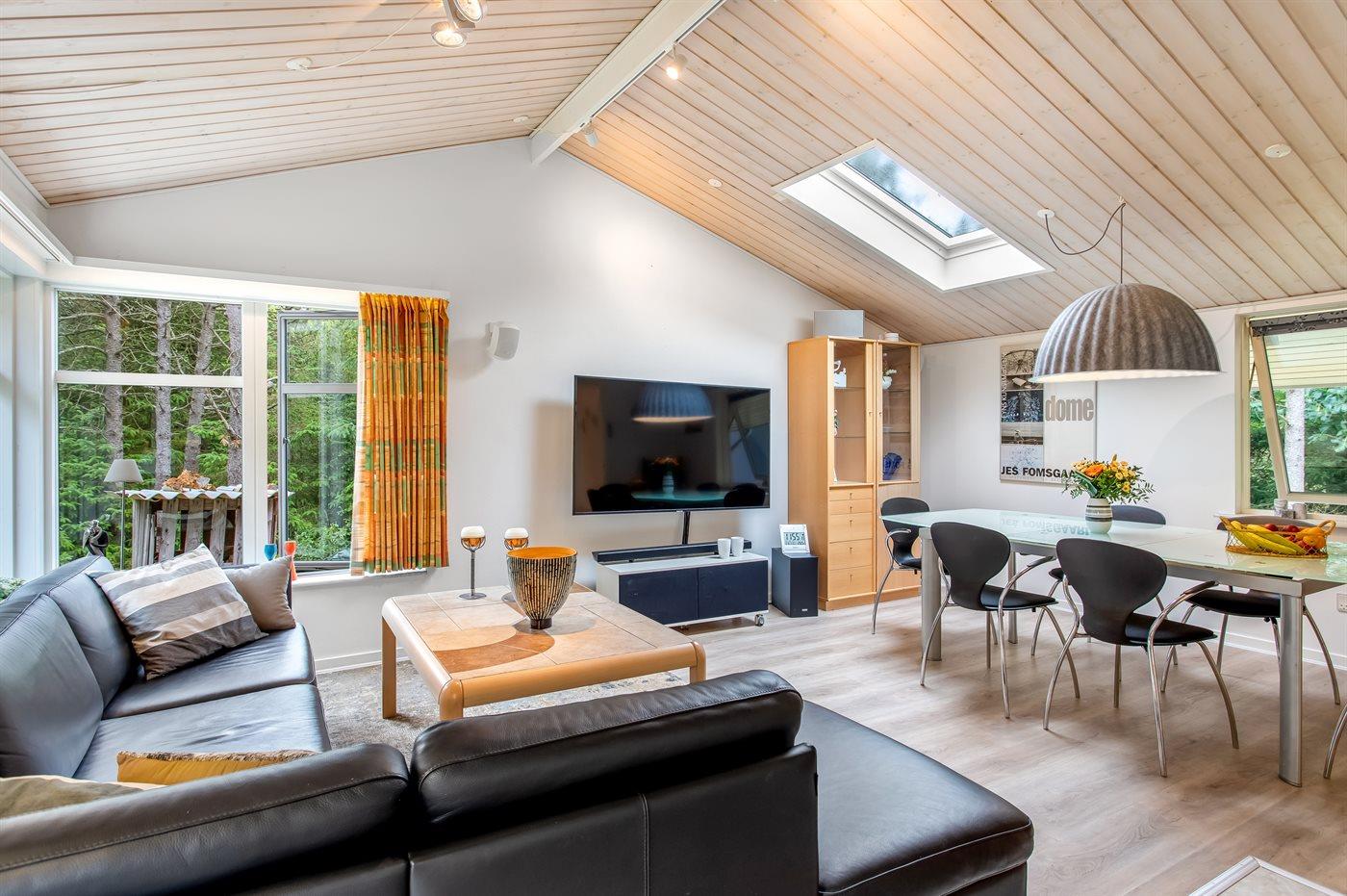 Et pænt og renoveret sommerhus med spa - beliggende på en naturgrund, som er afskærmet af høje nåletræer. Til huset hører en stor sydøstvendt terrasse med havemøbler, liggestole og bænk. Huset er bl.a. indrettet med en lys opholdsstue, hvor der er loft til kip og ovenlysvindue (motorbetjent). De 2 sovepladser på madrasser er placeret på husets hems. Bemærk: Der findes et par cykler ved huset (service er gæsternes eget ansvar der garanteres ikke for cyklernes tilstand).