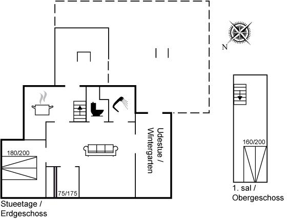 Der er i alt 3 soveværelser. Sovepladserne fordeler sig på: 4 sovepladser i dobbeltsenge. 2 sovepladser i køjeseng.