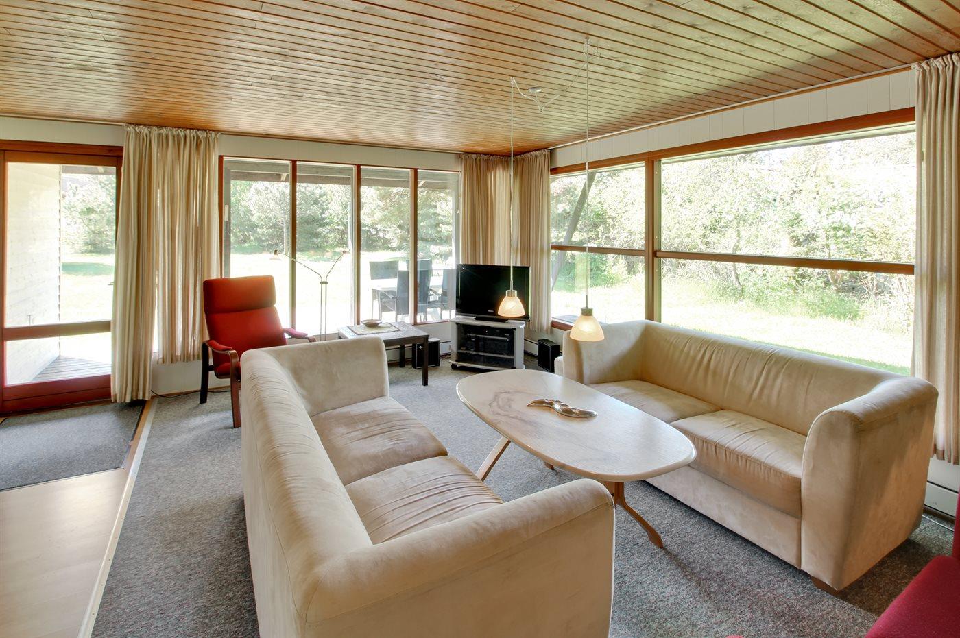 Velholdt familiesommerhus nær Vejers Strand på stor naturgrund med brændeovn og to terrasser.