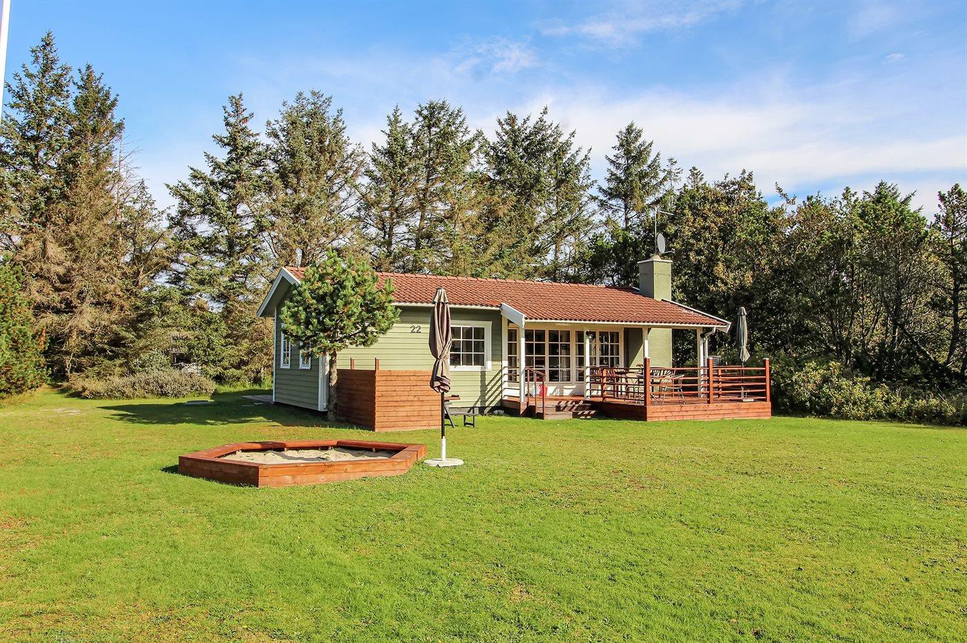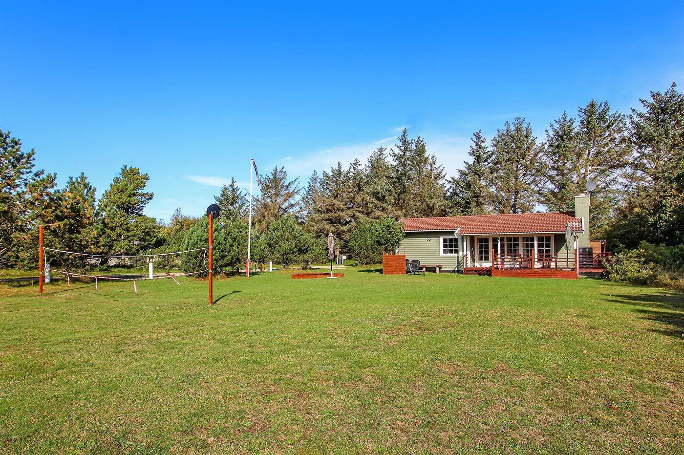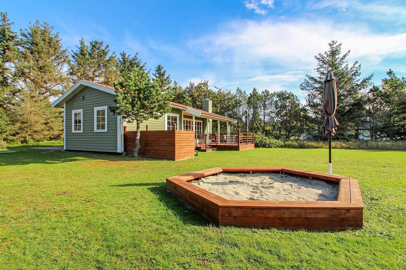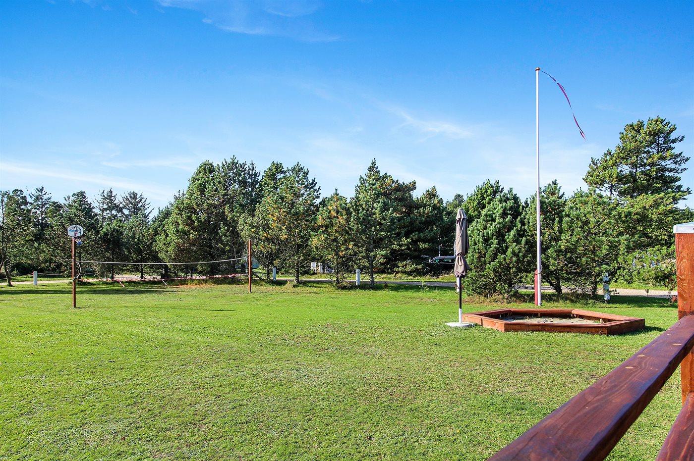Ferieboligen er beliggende på en 2501 m² stor naturgrund. Der er 1000 m til havet. Nærmeste forretning er beliggende i en afstand af 200 m. Til ferieboligen hører 28 m² terrasseareal. Desuden er der 15 m² overdækket terrasse. Sandkasse. Parkering ved ferieboligen.