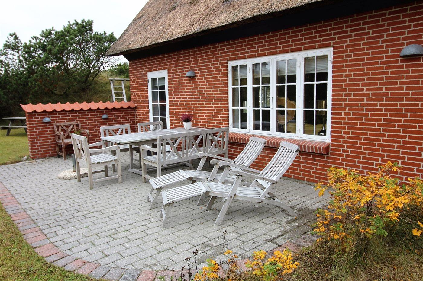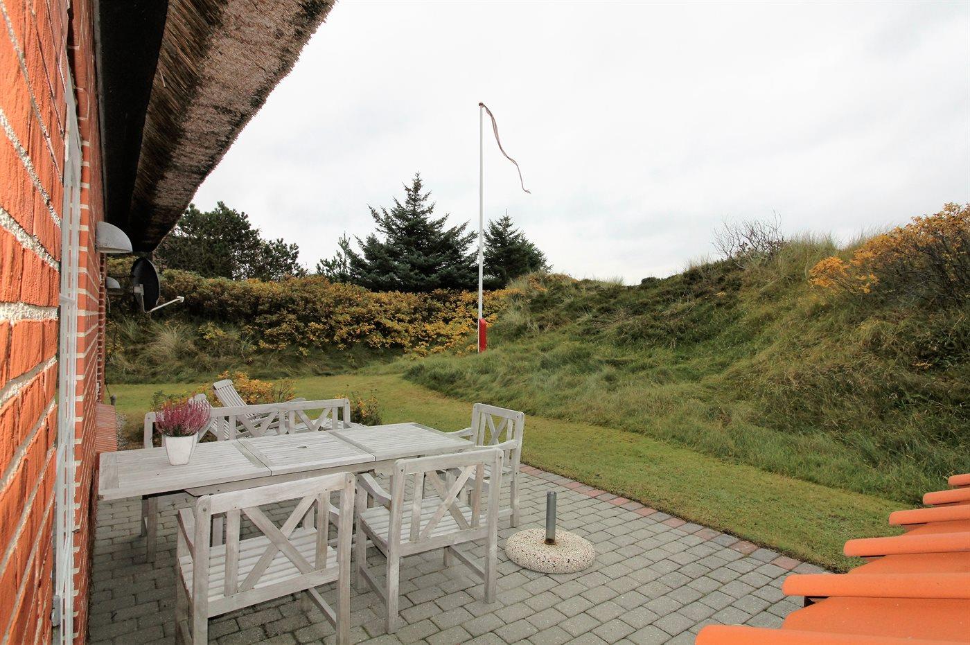 Ferieboligen er beliggende på en 1500 m² stor naturgrund. Der er 400 m til havet. Nærmeste forretning er beliggende i en afstand af 500 m. Til ferieboligen hører 25 m² terrasseareal. Der er redskabsrum. Gynge. Sandkasse. Parkering ved ferieboligen.