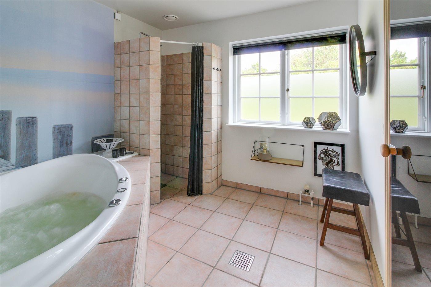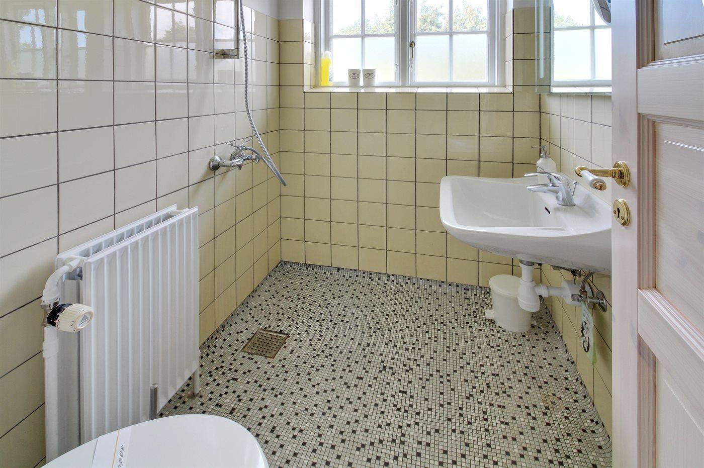 Der er 2 badeværelser med bruseniche og 2 toiletter, heraf 1 gæstetoilet. Der er gulvvarme på 1 badeværelse. I saunaen er der mulighed for afslapning.