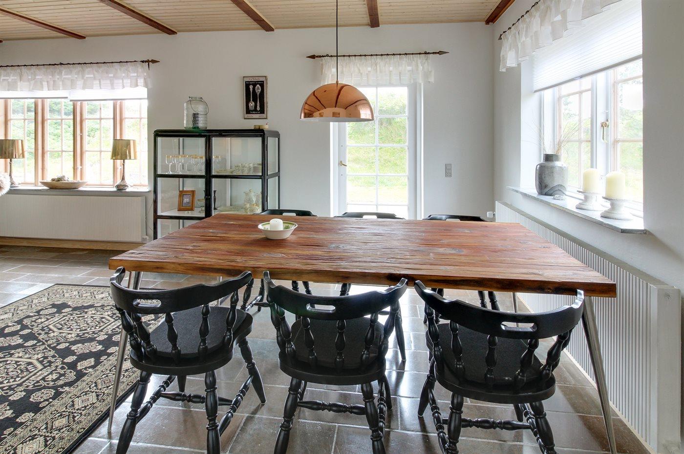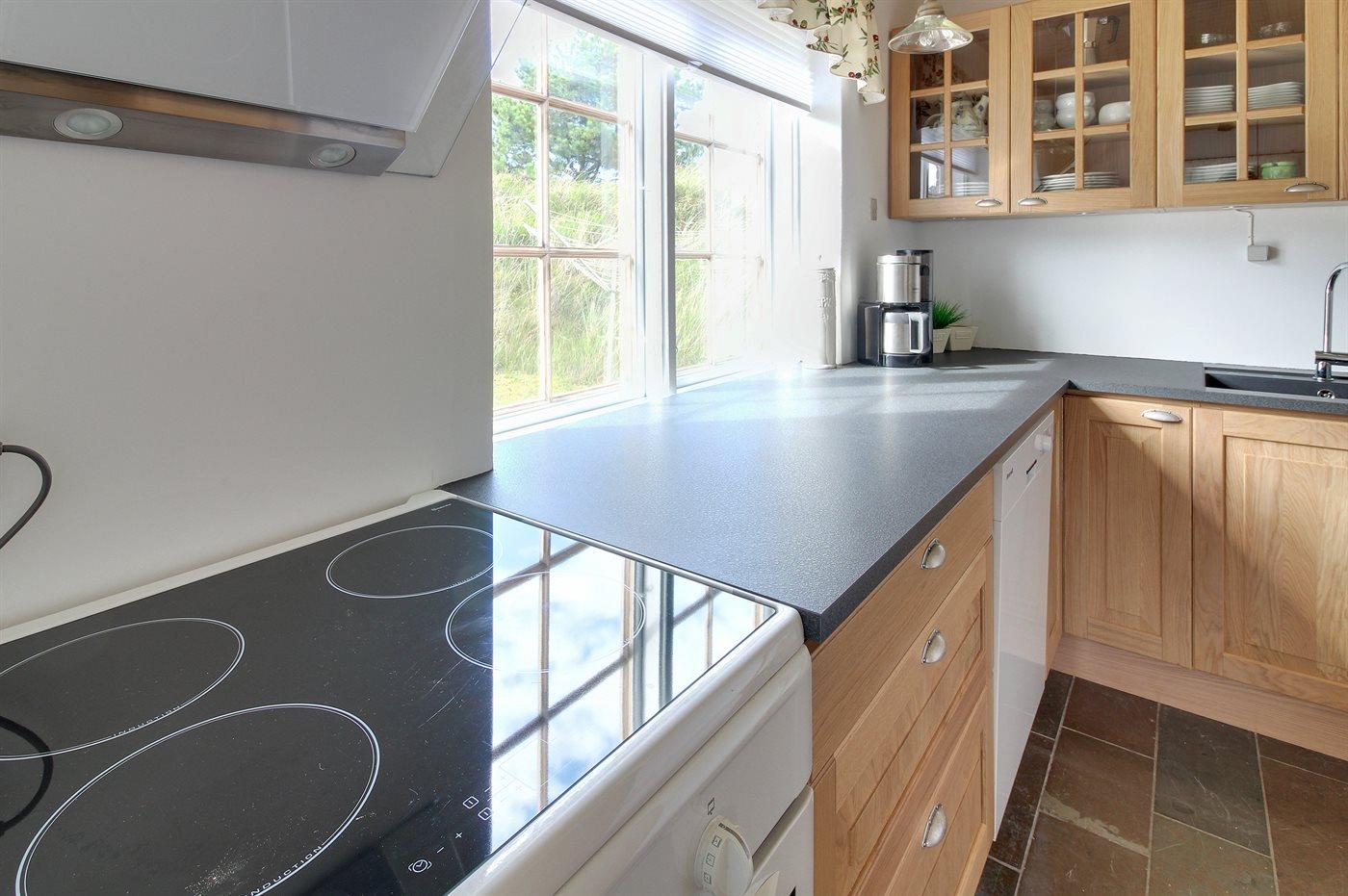 Køkkenet er udstyret med 1 køleskab. Der er 4 induktionskogeplader, varmluftovn, mikrobølgeovn samt opvaskemaskine.