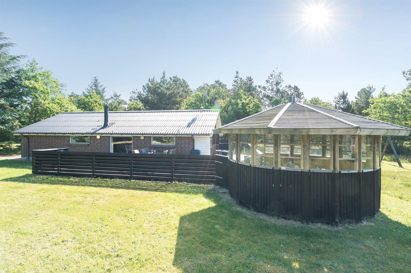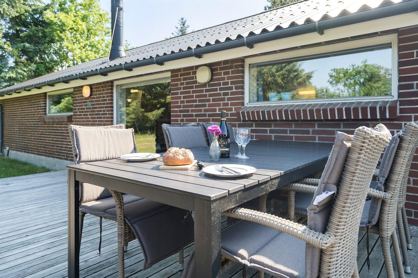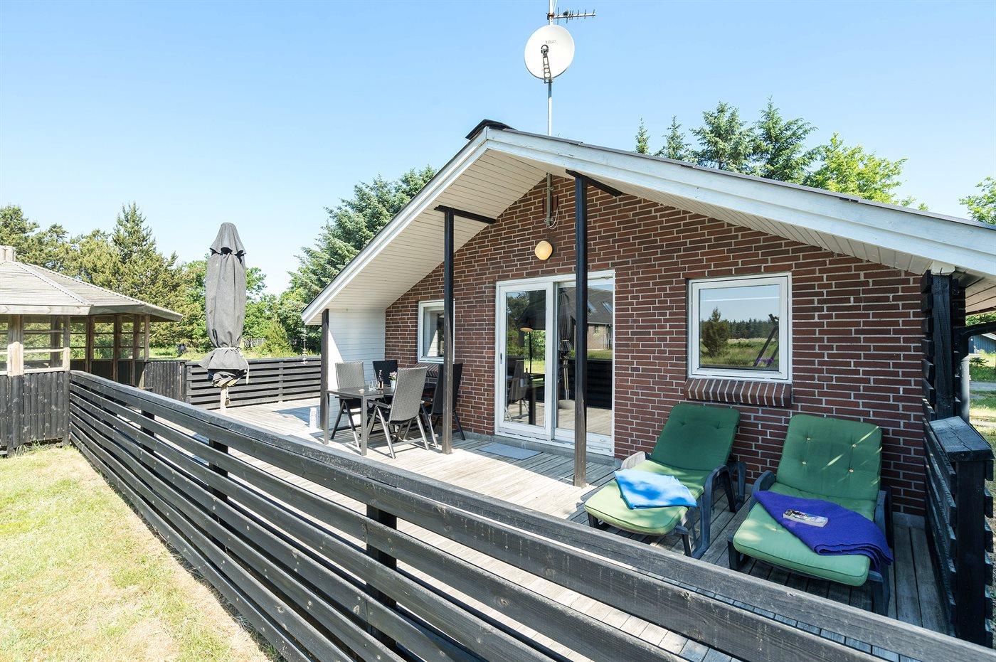 Ferieboligen er beliggende på en 2300 m² stor naturgrund. Der er 1000 m til havet. Nærmeste forretning er beliggende i en afstand af 600 m. Til ferieboligen hører 57 m² terrasseareal. Desuden er der 14 m² overdækket terrasse. Gynge. Parkering ved ferieboligen.