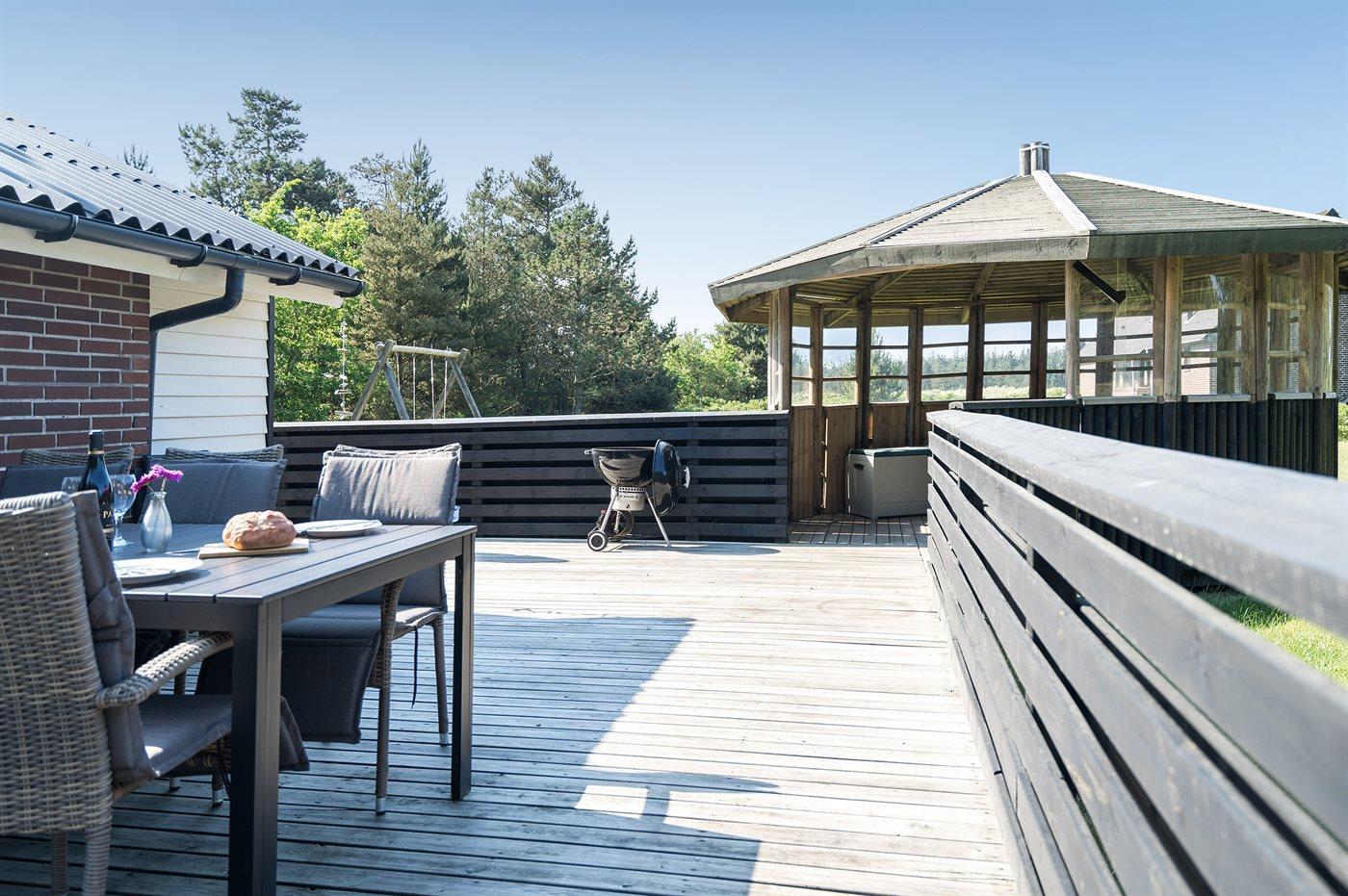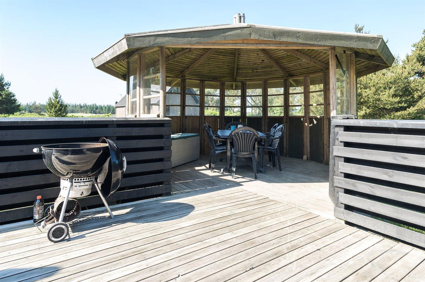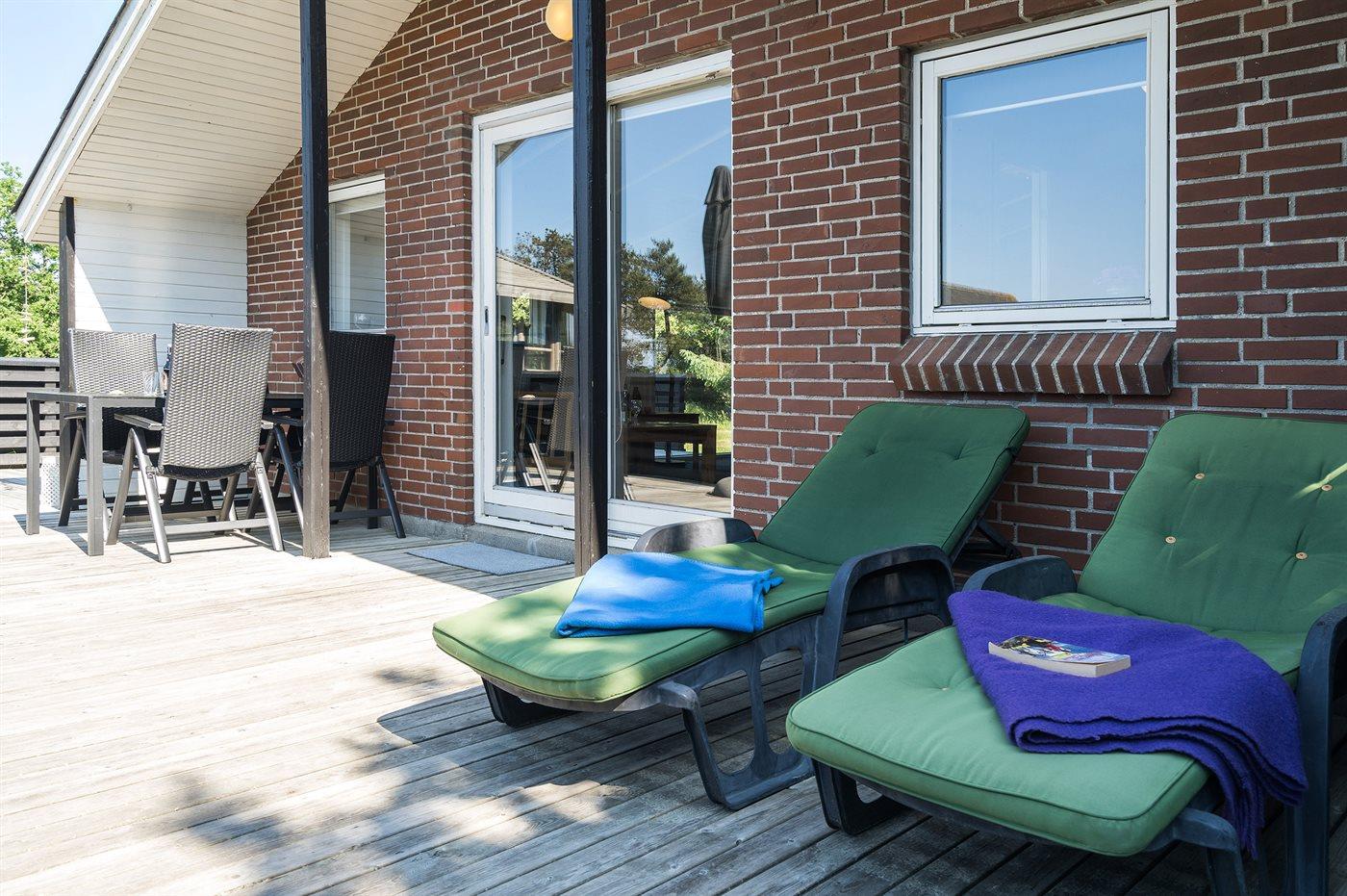 Ferieboligen er beliggende på en 2300 m² stor naturgrund. Der er 1000 m til havet. Nærmeste forretning er beliggende i en afstand af 600 m. Til ferieboligen hører 57 m² terrasseareal. Desuden er der 14 m² overdækket terrasse. Gynge. Parkering ved ferieboligen.