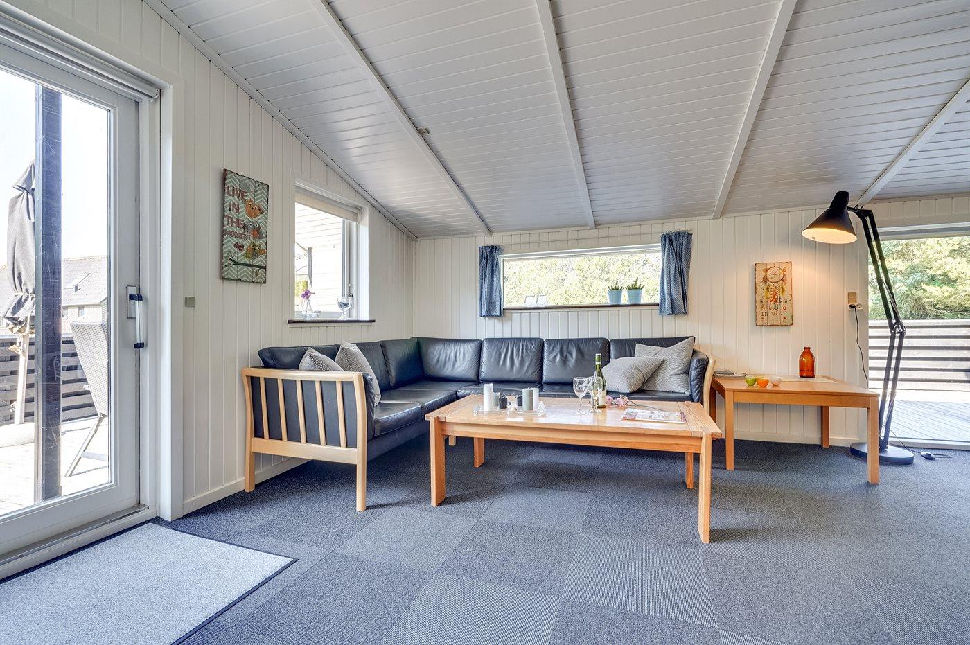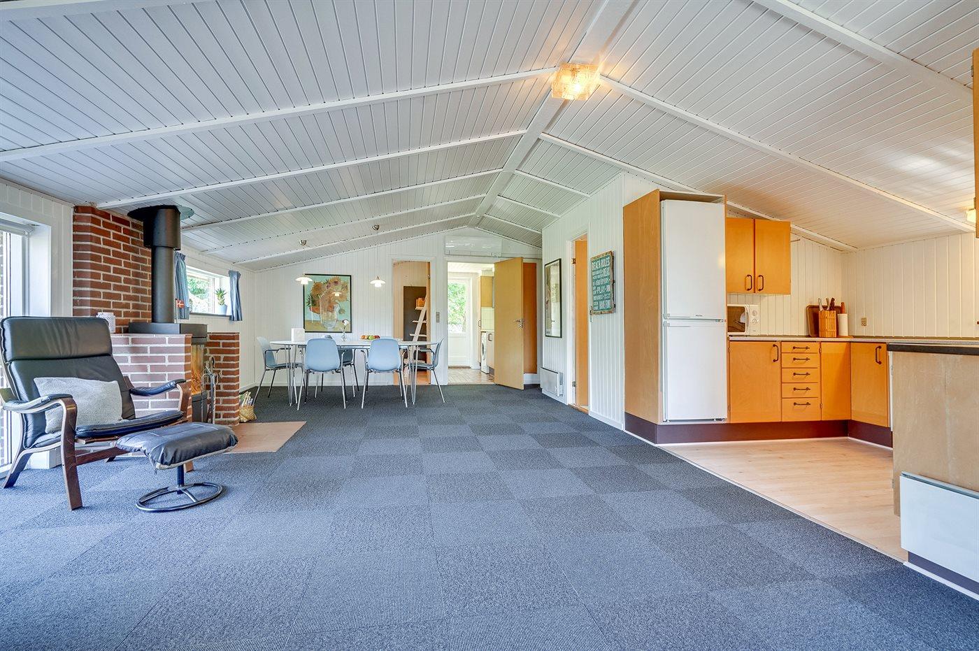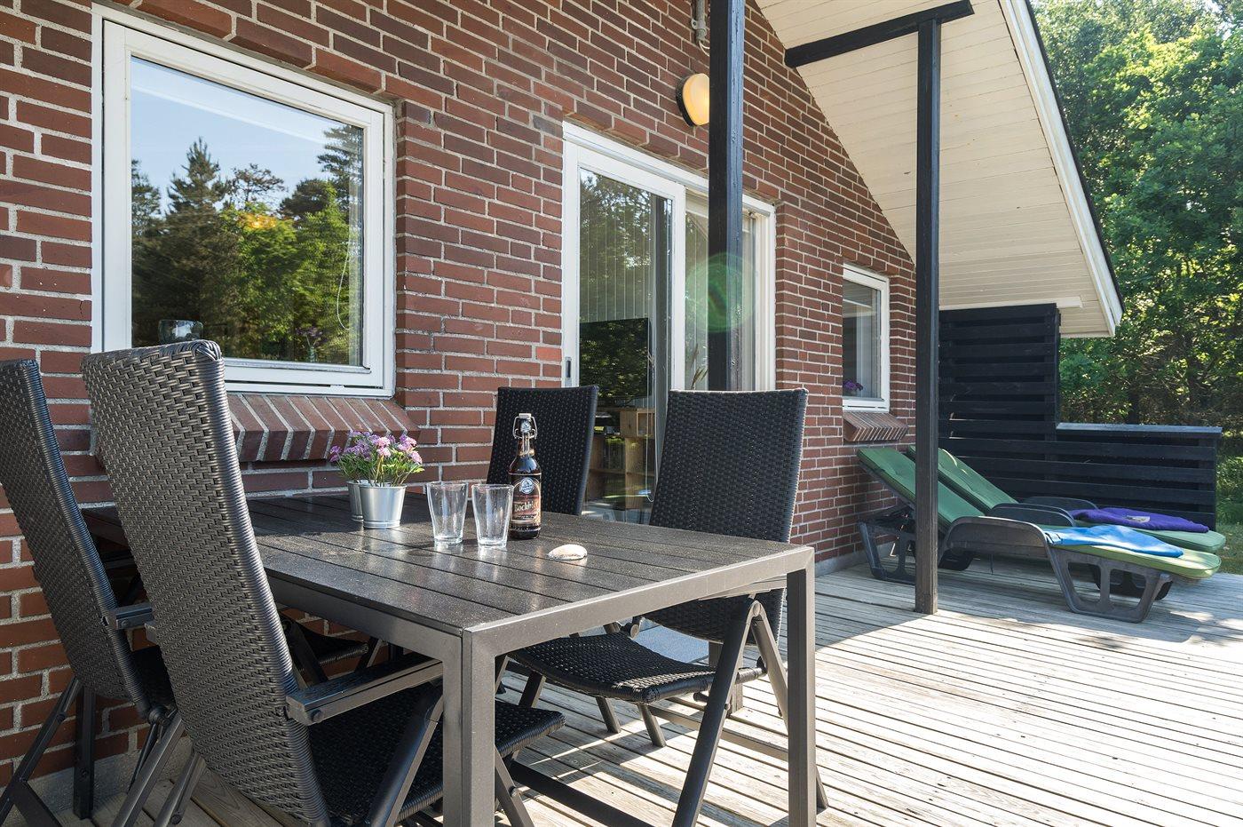 Pænt og velholdt feriehus. Huset er indrettet med en stor opholdsstue med sofa og tv stole, spisebord, tv med parabol og tæpper. Huset er beliggende i et område uden trafik. Grunden er med græsplæne, delvis beplantet af nåletræer. Fra huset er der fri udsigt til naturområdet hvor rådyr m.m. kan opleves.