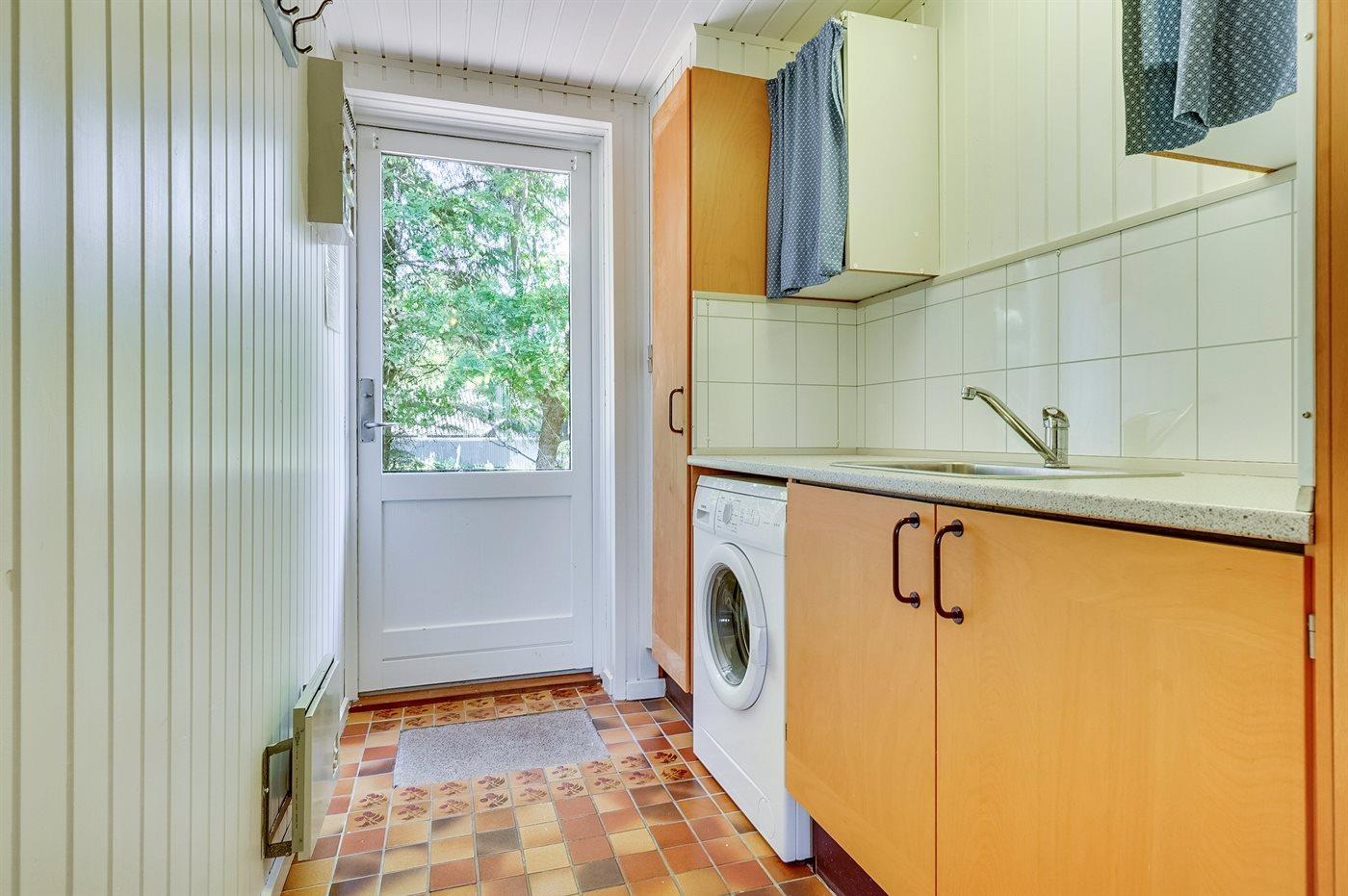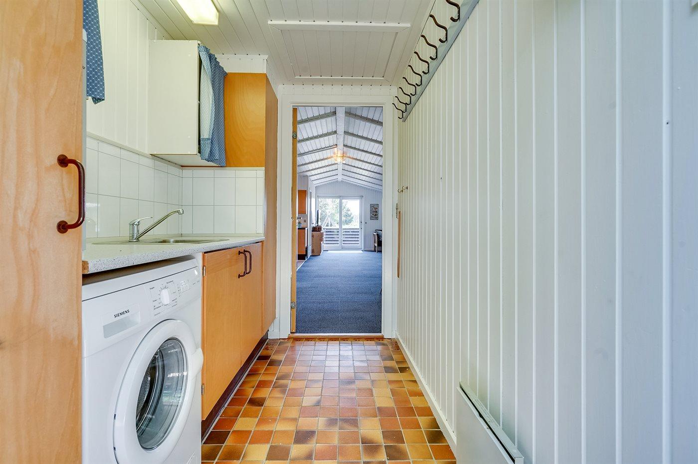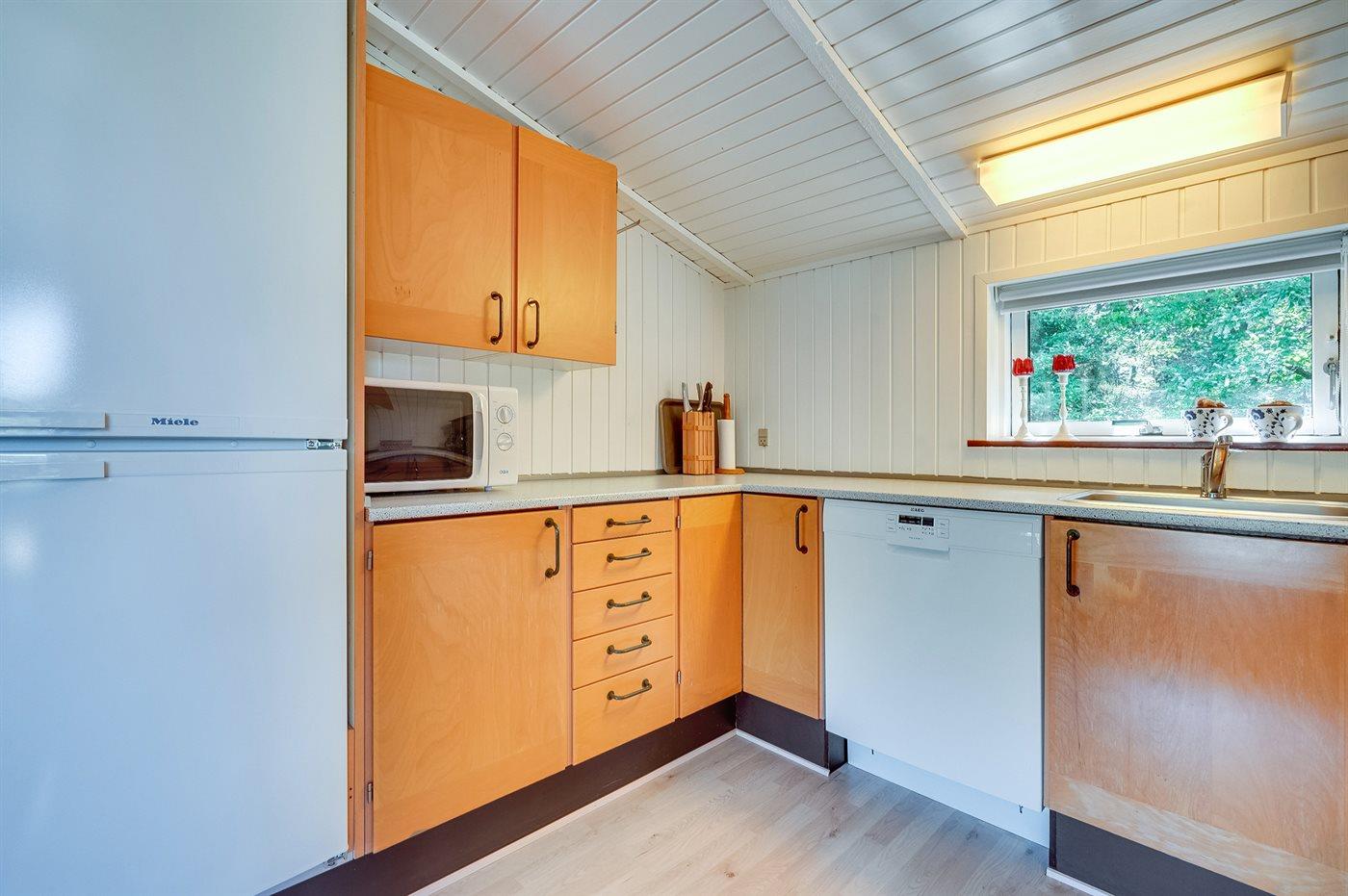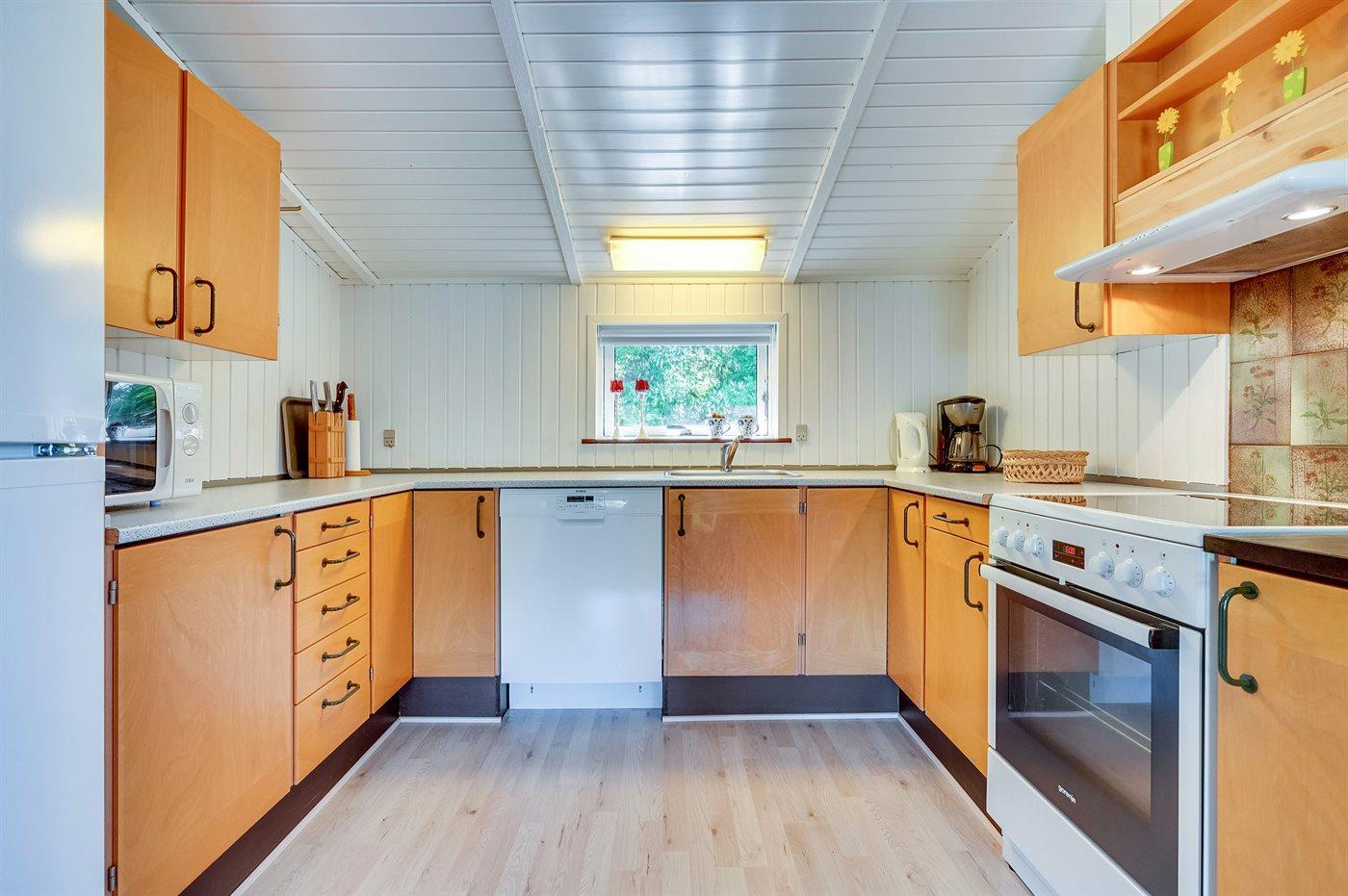 Køkkenet er udstyret med 1 køleskab. Der er 4 elkogeplader, bageovn, mikrobølgeovn samt opvaskemaskine.