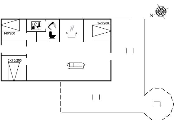 Der er 1 badeværelse med bruser og 1 toilet. I saunaen er der mulighed for afslapning.