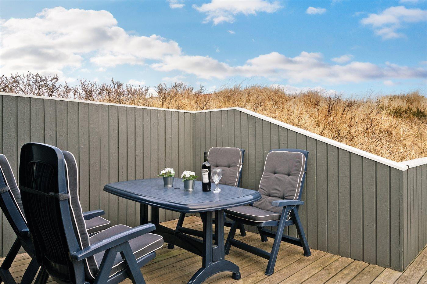 Ferieboligen er beliggende på en 743 m² stor klitgrund. Der er 200 m til havet. Nærmeste forretning er beliggende i en afstand af 300 m. Til ferieboligen hører 55 m² terrasseareal. Desuden er der 6 m² overdækket terrasse. Heraf i alt 2 m² lukket terrasse. Parkering ved ferieboligen.