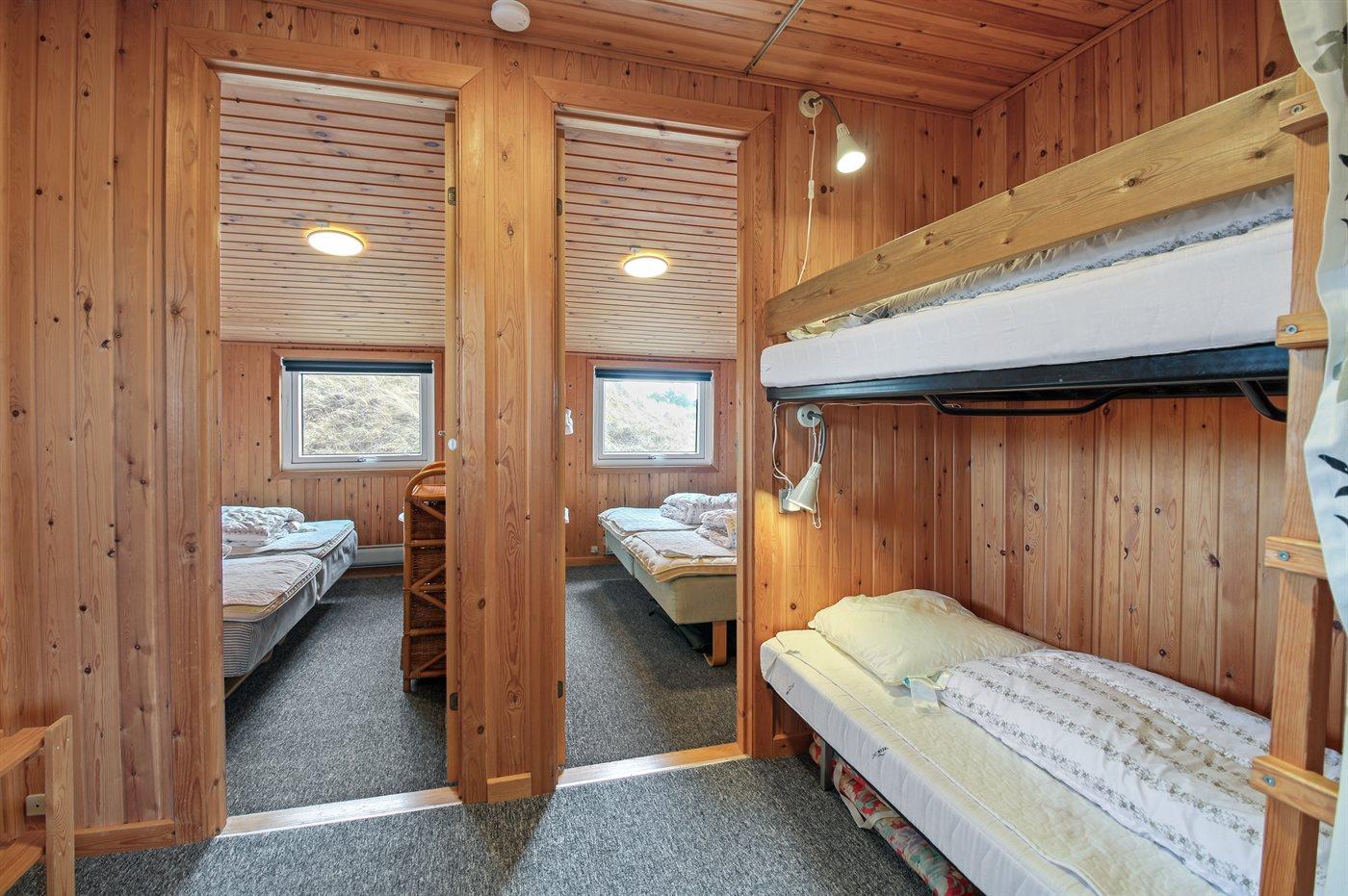Der er i alt 3 soveværelser. Sovepladserne fordeler sig på: 4 sovepladser i dobbeltsenge. 2 sovepladser i køjeseng.