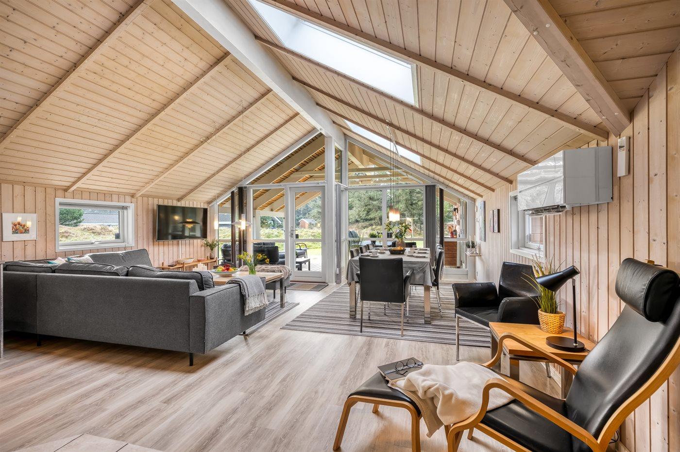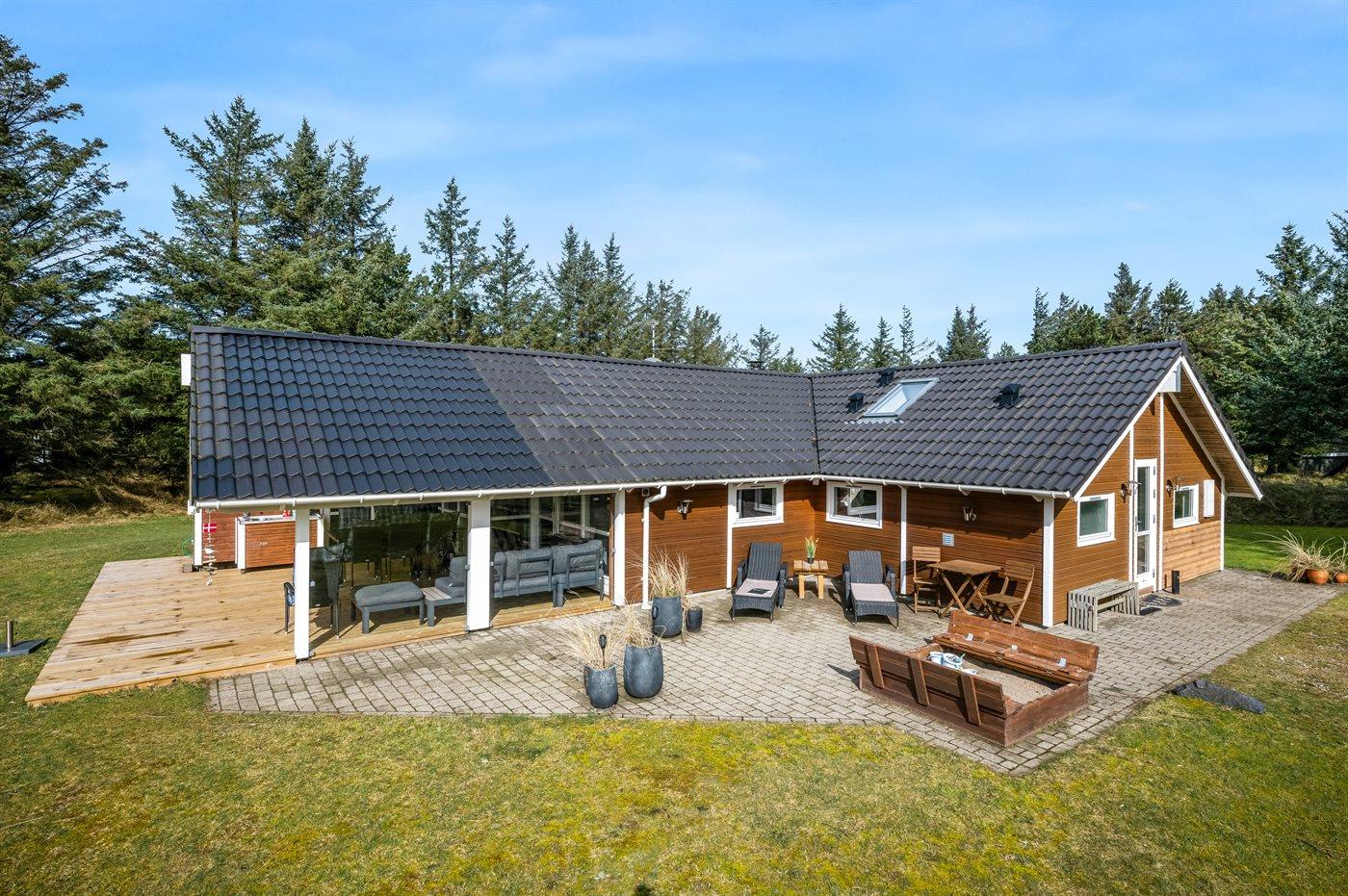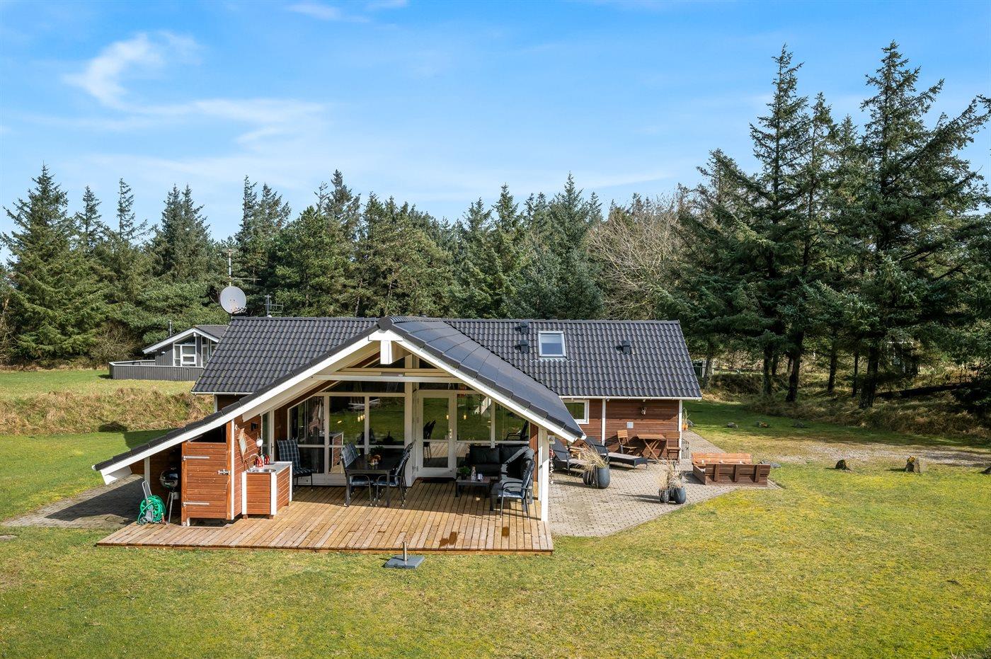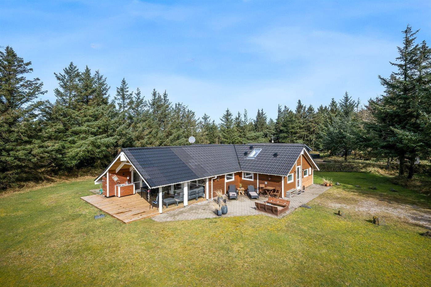 Velholdt sommerhus med spa, sauna og overdækket terrasse nær Vejers Strand.