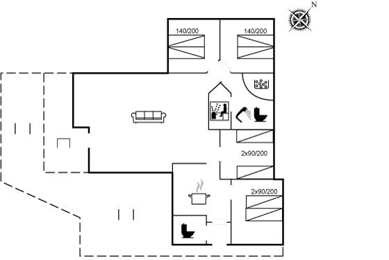 Der er i alt 4 soveværelser. Sovepladserne fordeler sig på: 4 sovepladser i dobbeltsenge. 4 sovepladser i enkeltsenge.