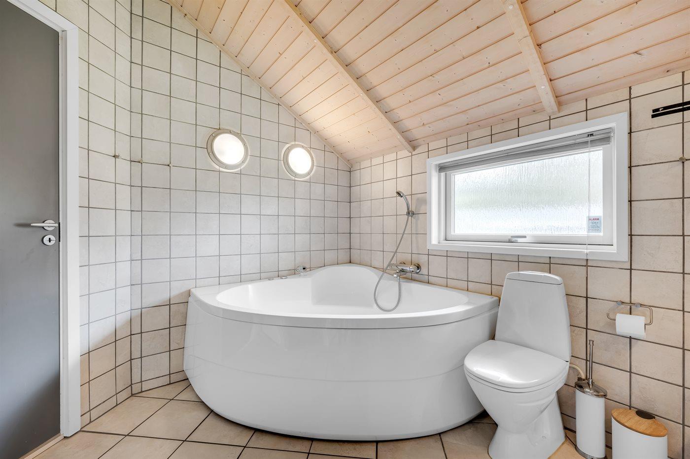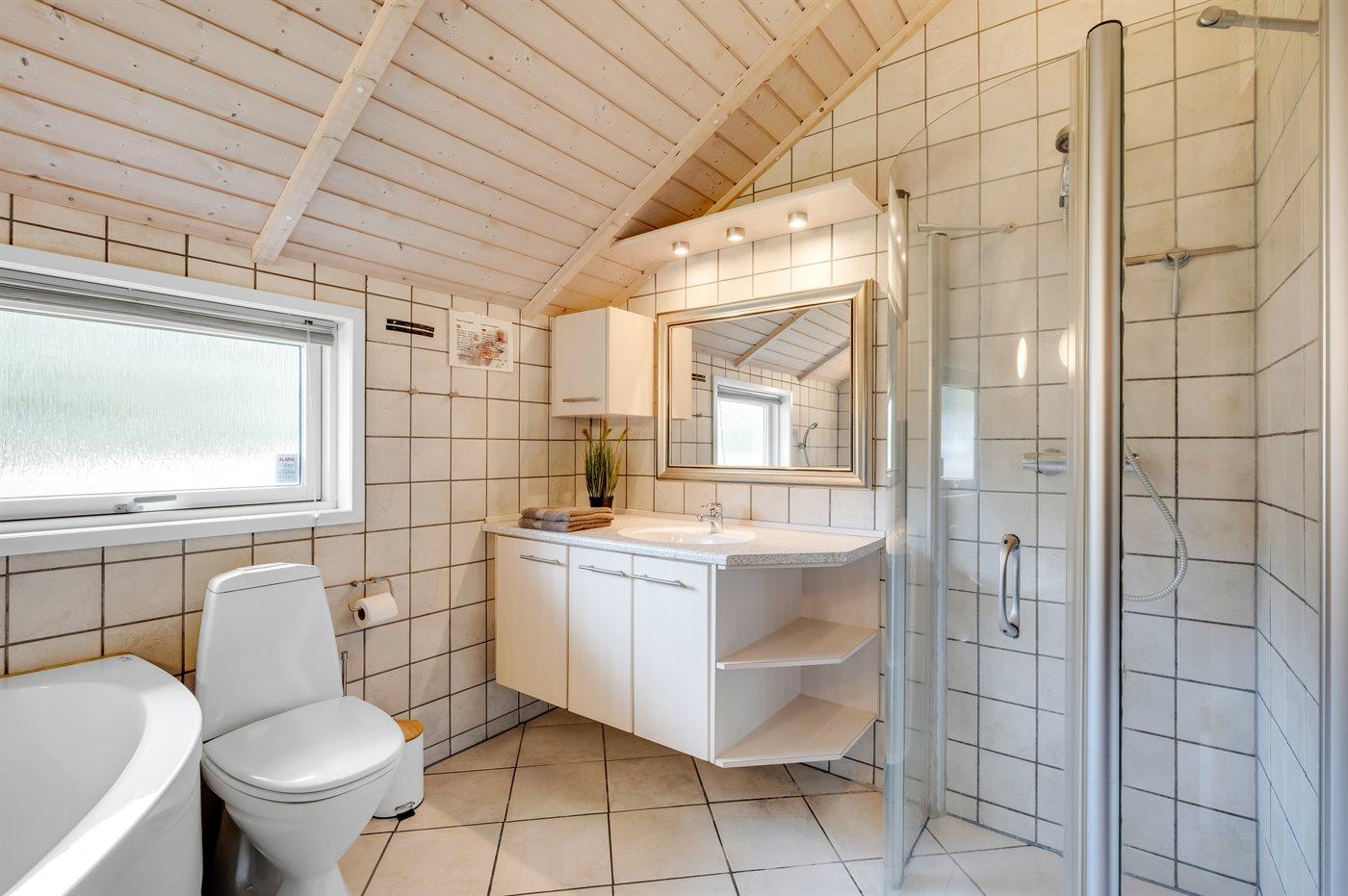 Der er 1 badeværelse med bruseniche og 2 toiletter. Der er gulvvarme på 2 badeværelser. I saunaen er der mulighed for afslapning.