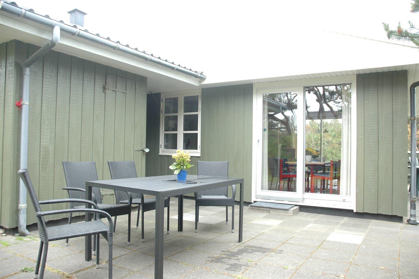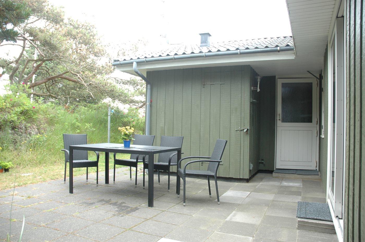 Ferieboligen er beliggende på en 2000 m² stor naturgrund. Der er 500 m til havet. Nærmeste forretning er beliggende i en afstand af 400 m. Til ferieboligen hører 21 m² terrasseareal. Desuden er der 10 m² overdækket terrasse. Parkering ved ferieboligen.