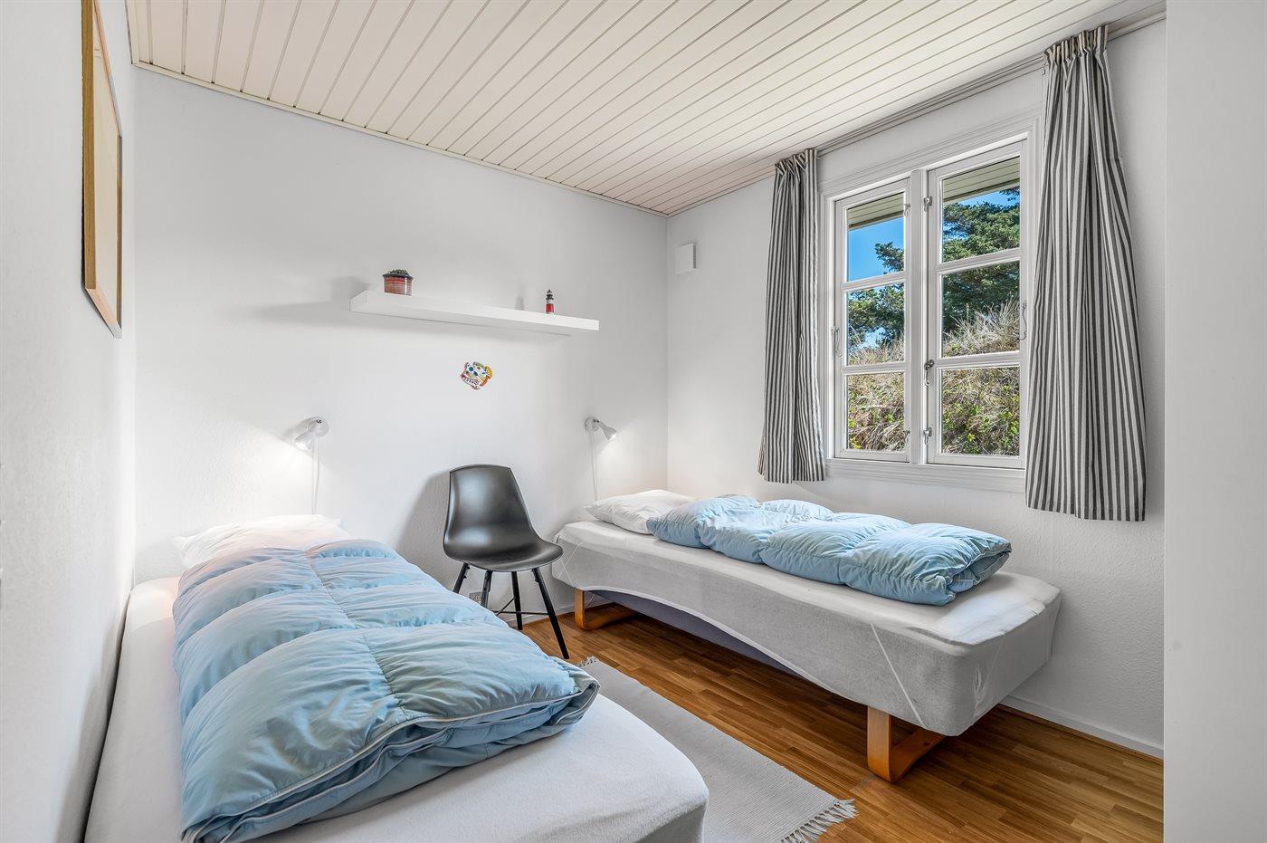 Der er i alt 2 soveværelser. Sovepladserne fordeler sig på: 2 sovepladser i dobbeltseng. 2 sovepladser i enkeltsenge.