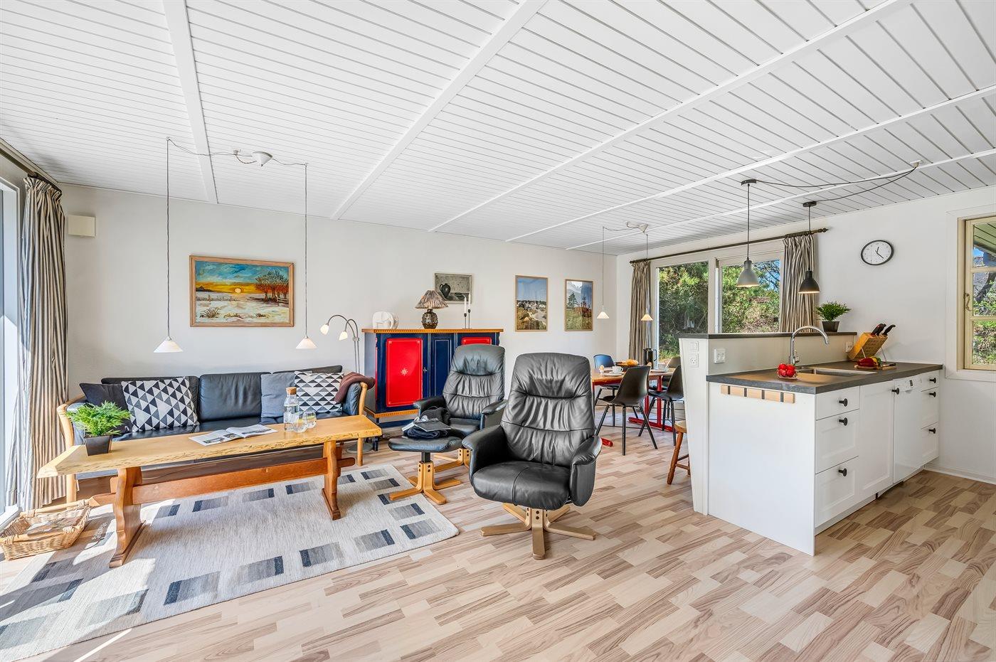 Charmerende fritidshus i Vejers Strand med store terrasser, tæt på strand og indkøb, perfekt til en afslappende ferie.